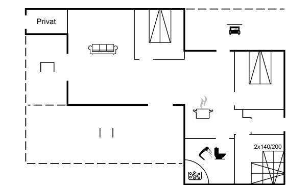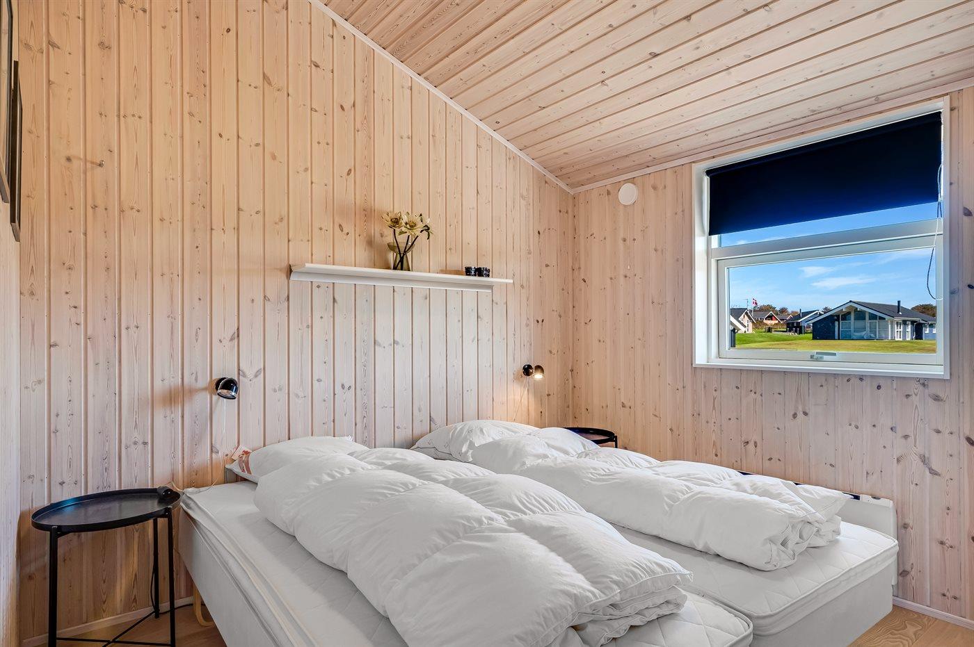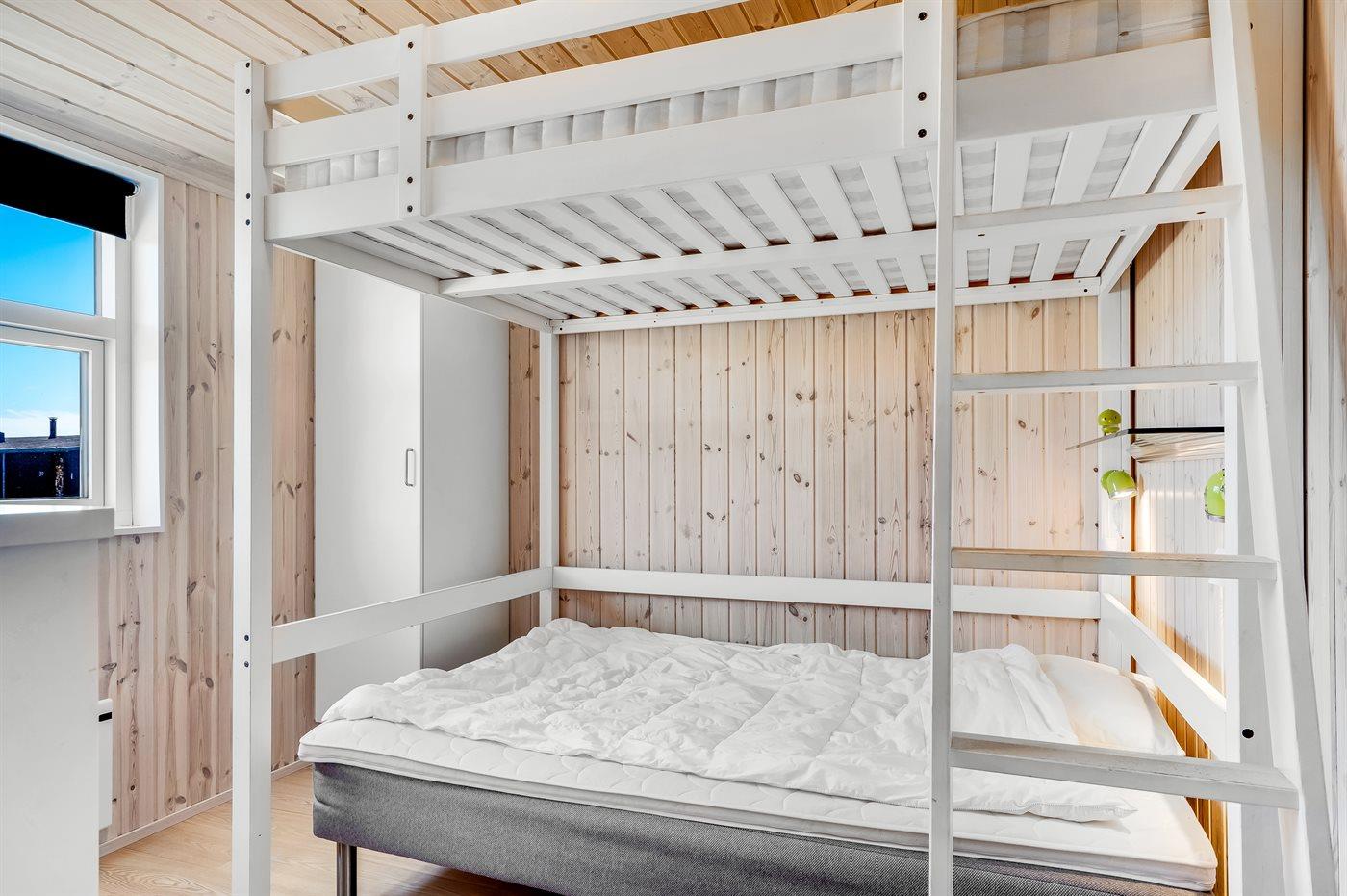 Der er i alt 3 soveværelser. Sovepladserne fordeler sig på: 6 sovepladser i dobbeltsenge. Derudover er der 1 stk. barneseng, og køjeseng med 140 cm bred overkøje.