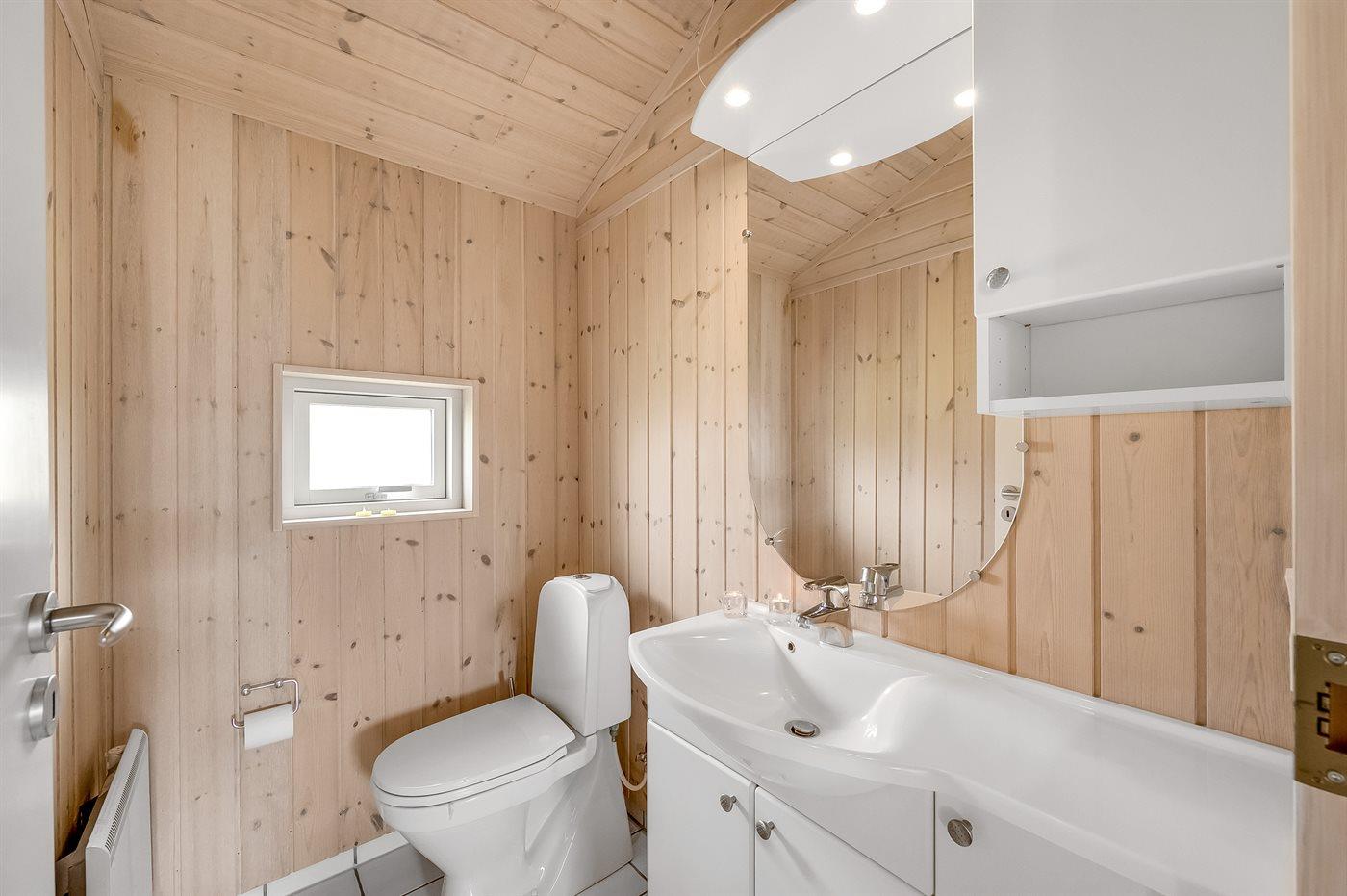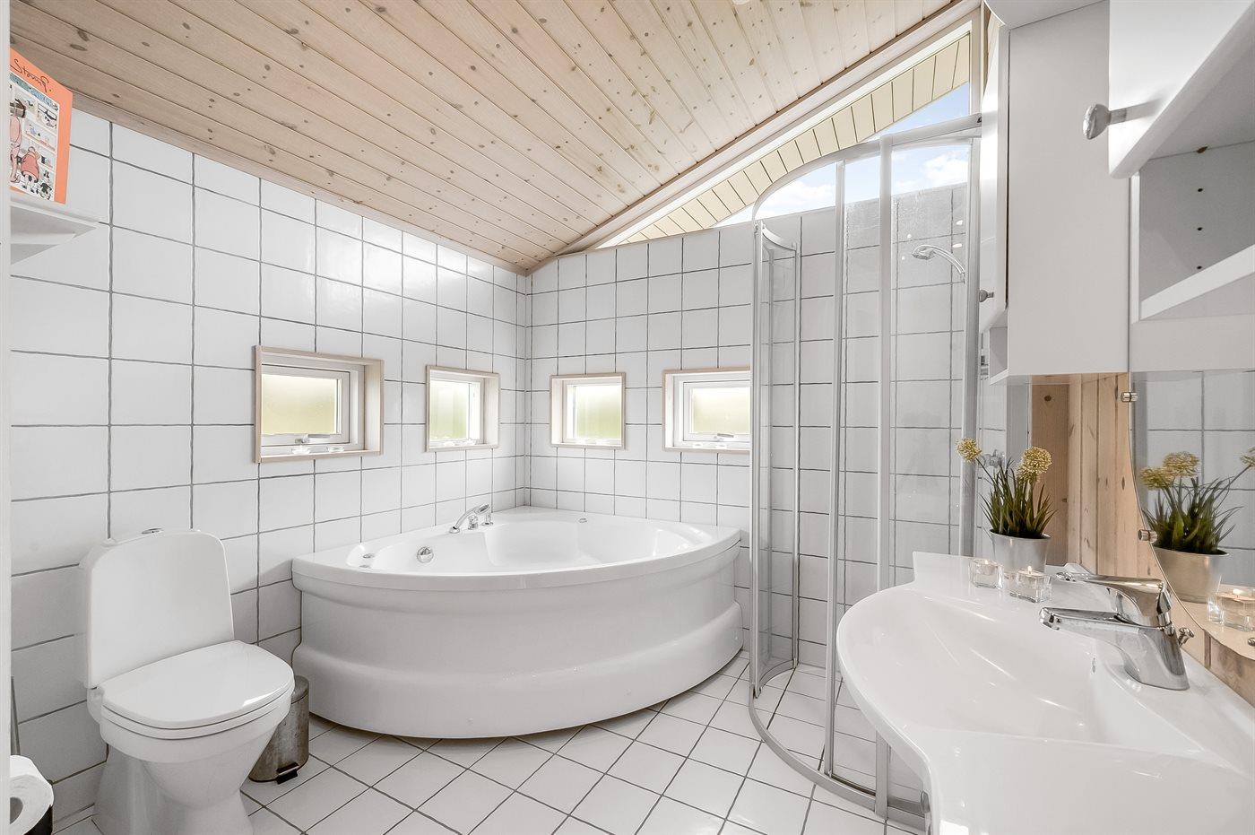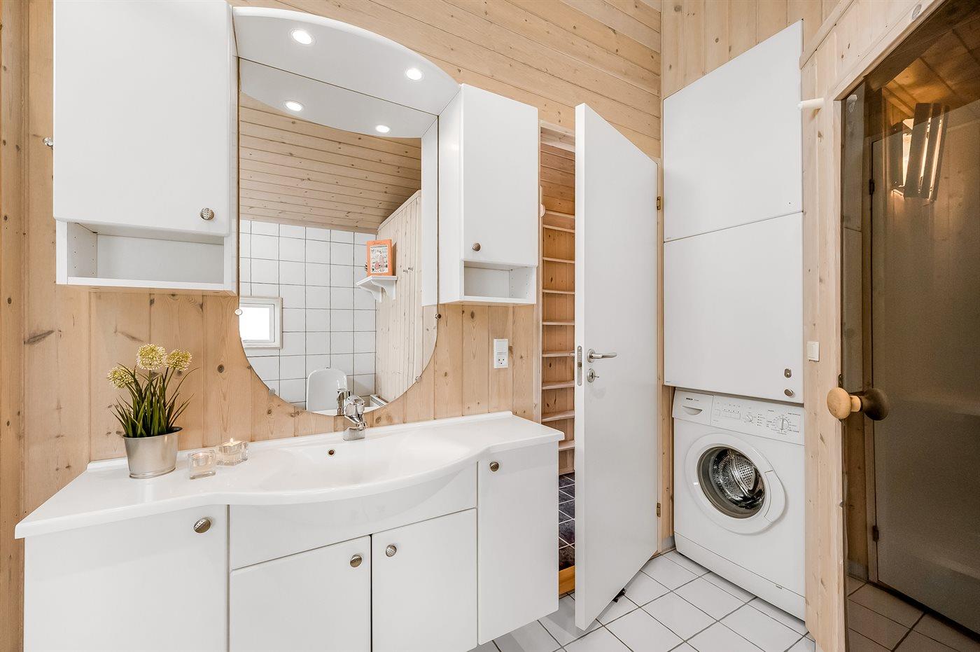Der er 1 badeværelse med bruseniche og 2 toiletter, heraf 1 gæstetoilet. Der er gulvvarme på 1 badeværelse. Der er gulvvarme på gæstetoilettet. I saunaen er der mulighed for afslapning.