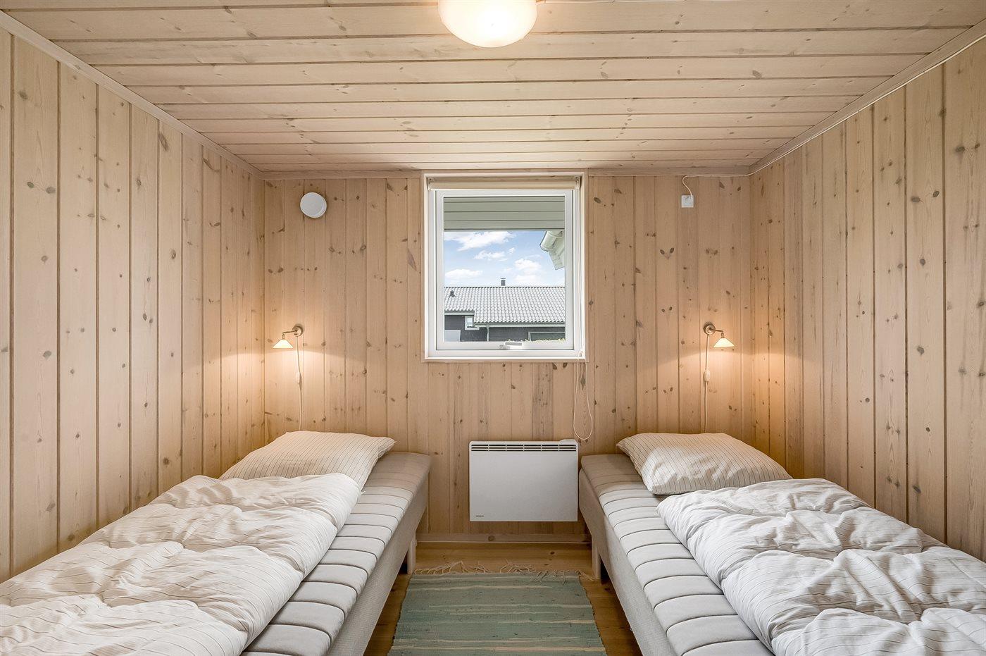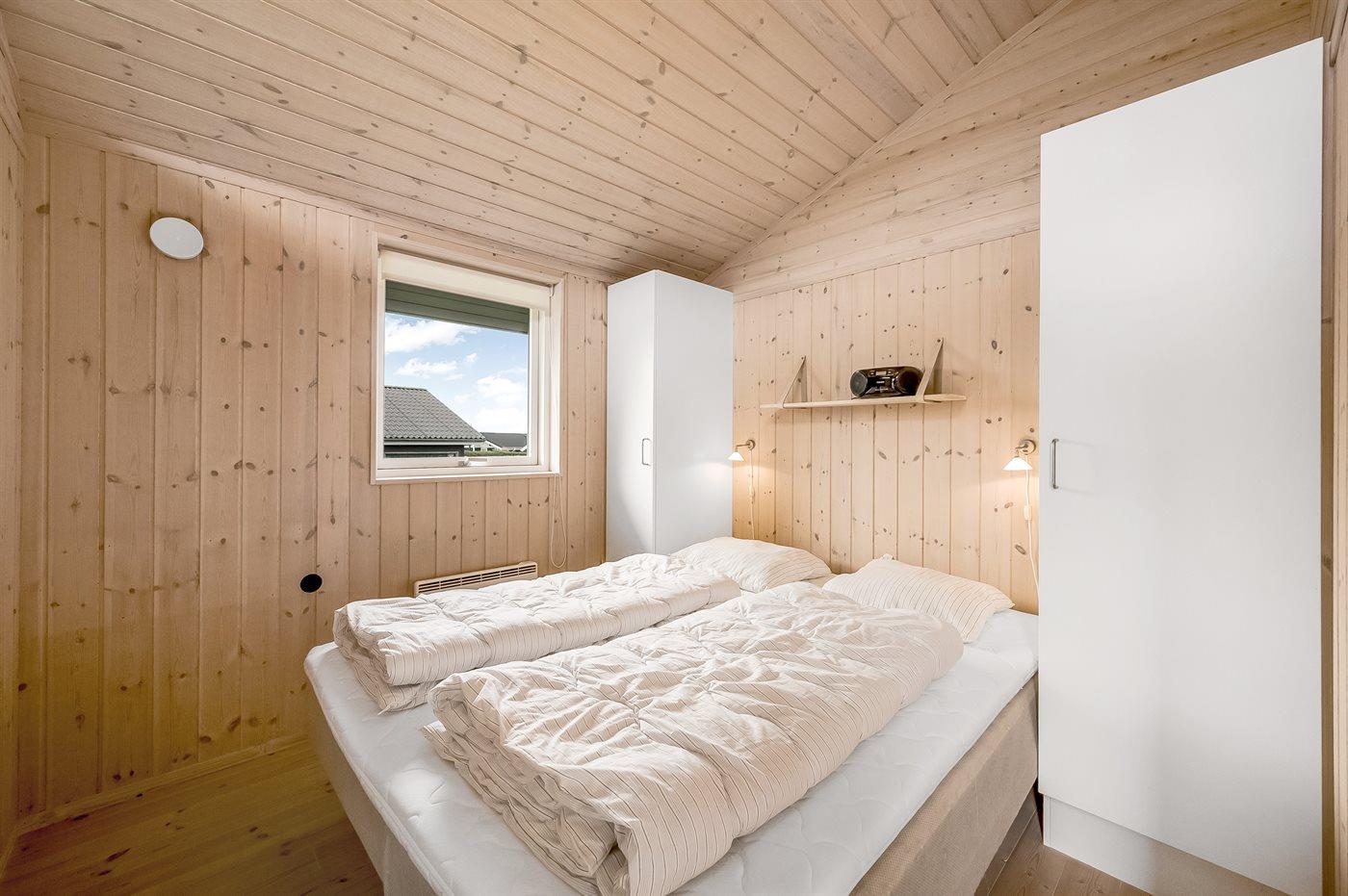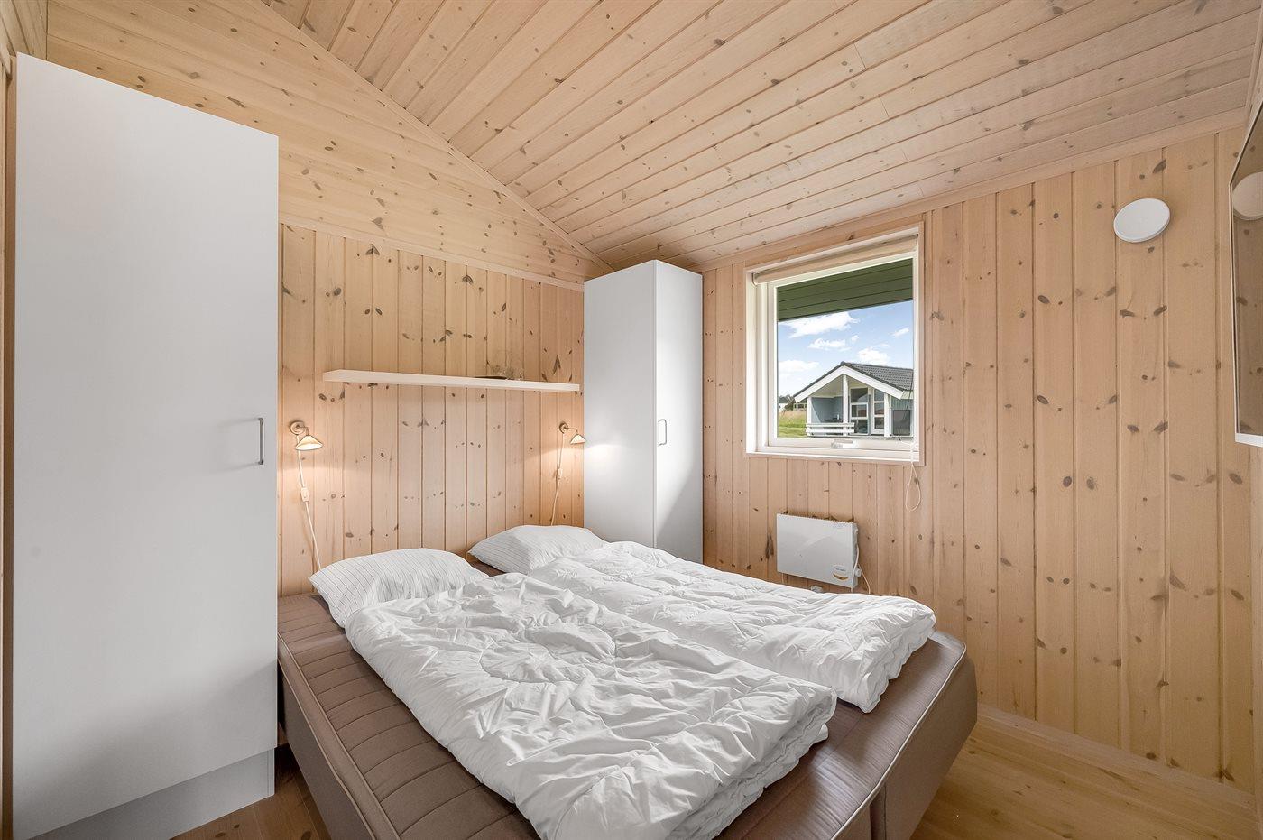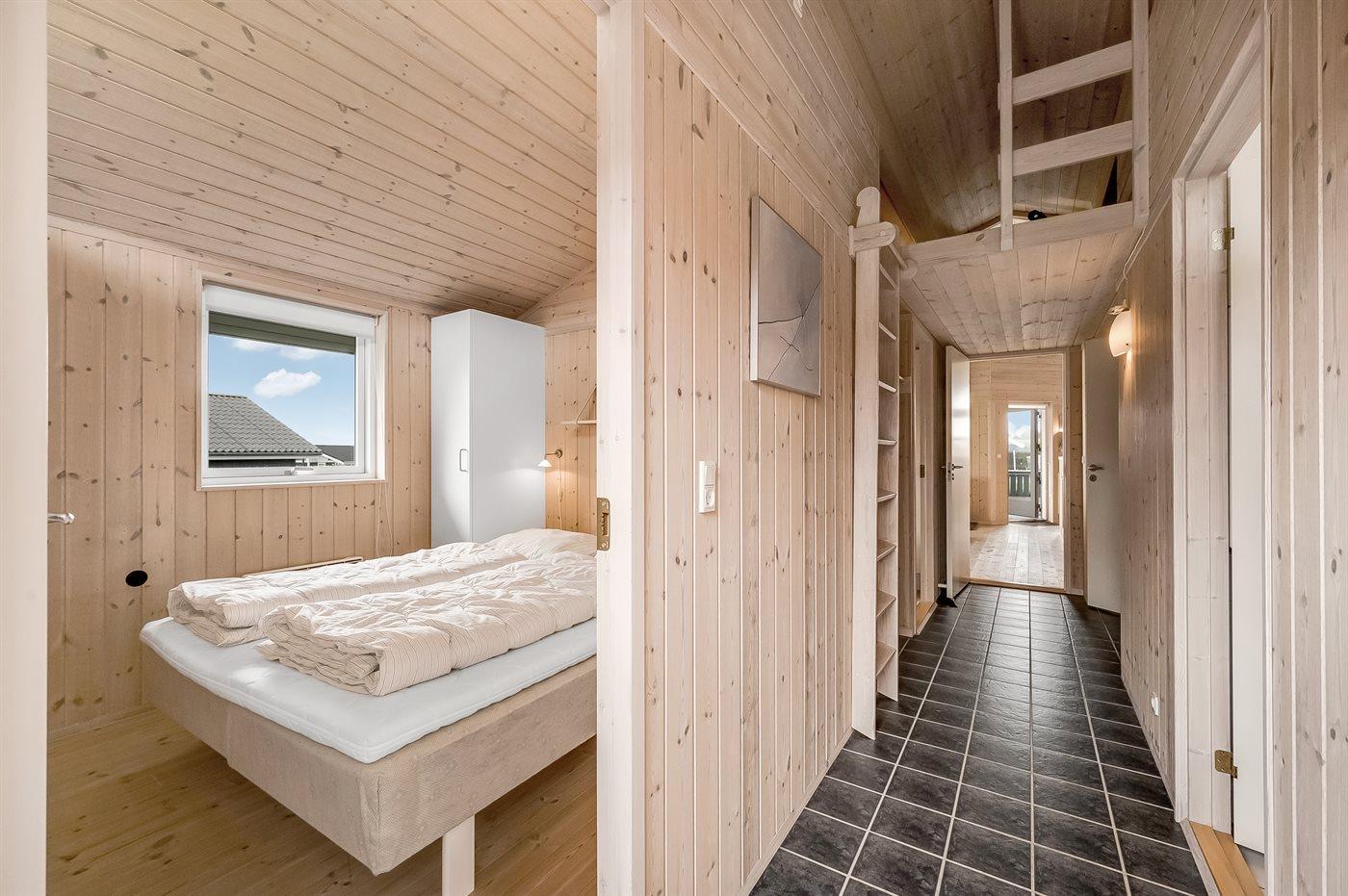 Der er i alt 3 soveværelser. Sovepladserne fordeler sig på: 4 sovepladser i dobbeltsenge. 2 sovepladser i enkeltsenge. 2 sovepladser i alkove. Derudover er der 1 stk. barneseng.