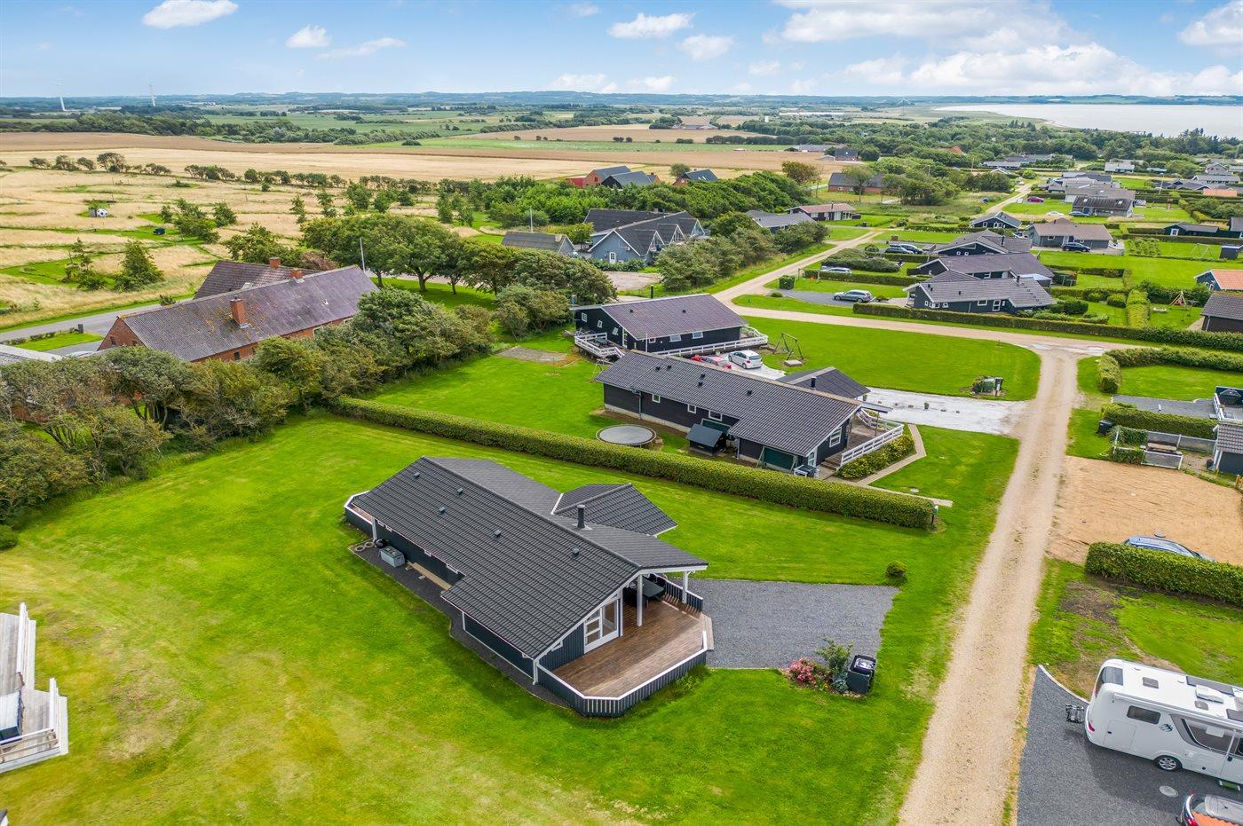 Nær Limfjorden, i naturskønne omgivelser, ligger dette velindrettet sommerhus med fjordudsigt fra såvel hus som grund. Til huset hører skønne terrasser mod både øst og vest, så solen kan nydes hele dagen for til sidst at følge solnedgangen i Limfjorden. Huset er hyggeligt indrettet, og i forbindelse med spisestuen er der indbygget alkove, hvor 2 af sovepladserne befinder sig.