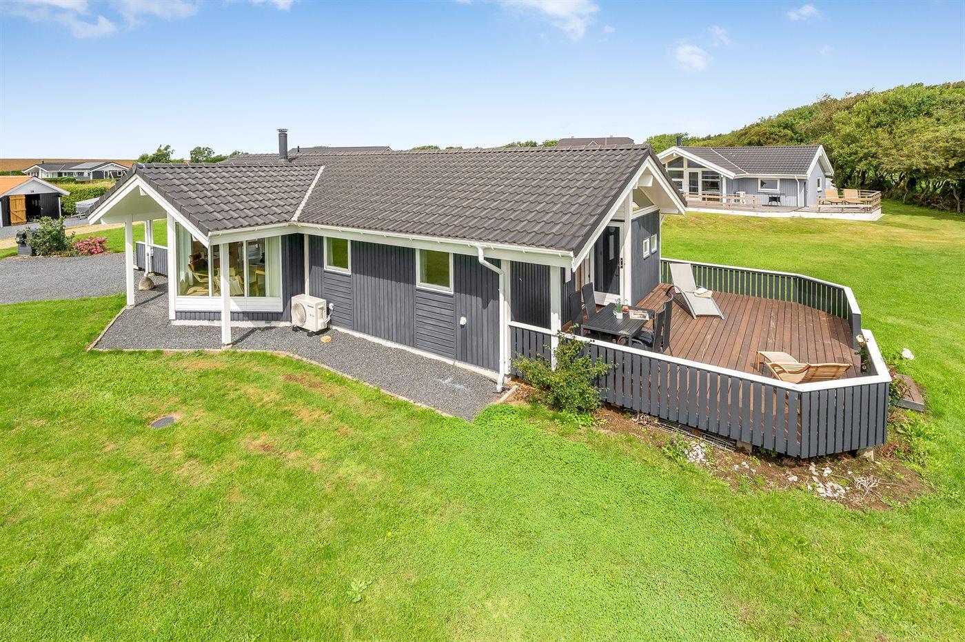 Hyggeligt sommerhus nær Limfjorden med spa, sauna, og skøn udsigt fra terrasser mod øst og vest.