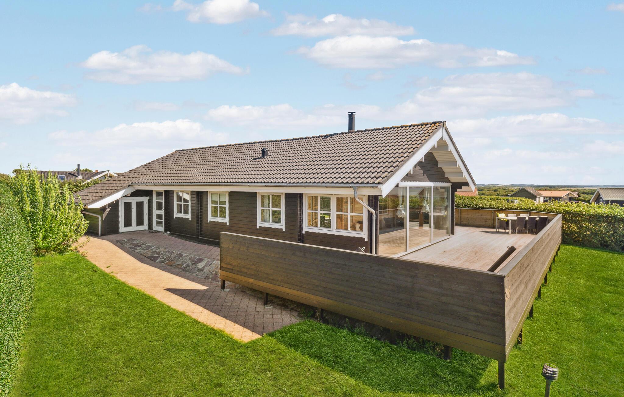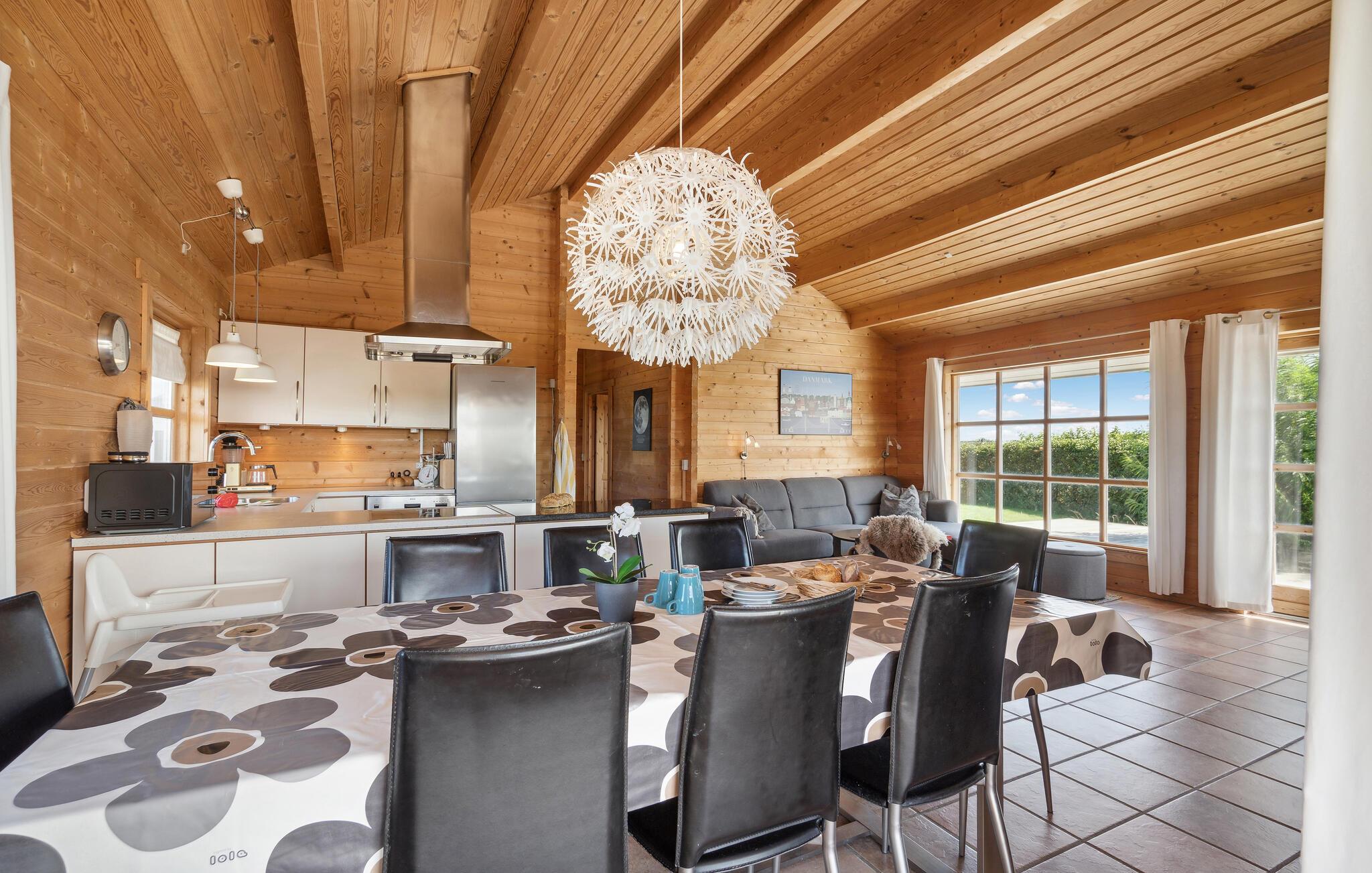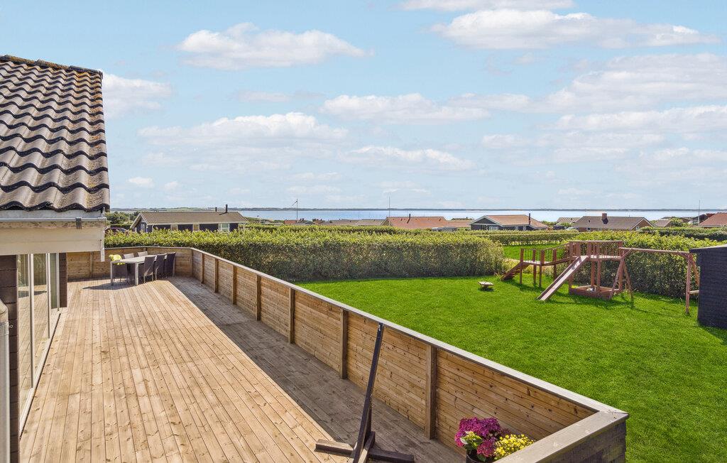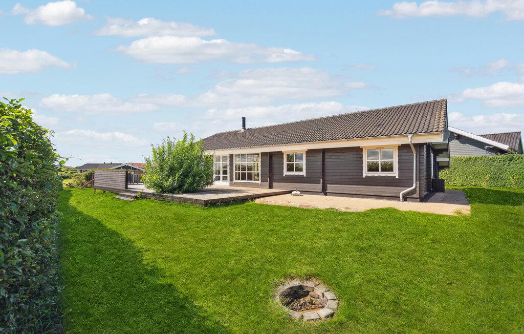 Velkommen til et skønt landskab ved Limfjorden og dette indbydende sommerhus, som giver jer gode rammer til at slappe af. Huset er dejligt rummeligt med den varme farve fra træet, som skaber en ekstra hyggelig atmosfære. Find sammen om brætspil og gode bøger i stuen efter en lang dag på farten, og hvis det bliver lidt køligt udenfor, kan I tænde op i brændeovnen og mærke hyggen brede sig. Sommerdagene tilbringes på husets skønne terrasse, hvor I kan læne jer tilbage med en kop kaffe og kigge ud over fjordens blå vand. Grunden giver børnene god plads til at løbe og lege eller klatre sig en tur på legestativet.