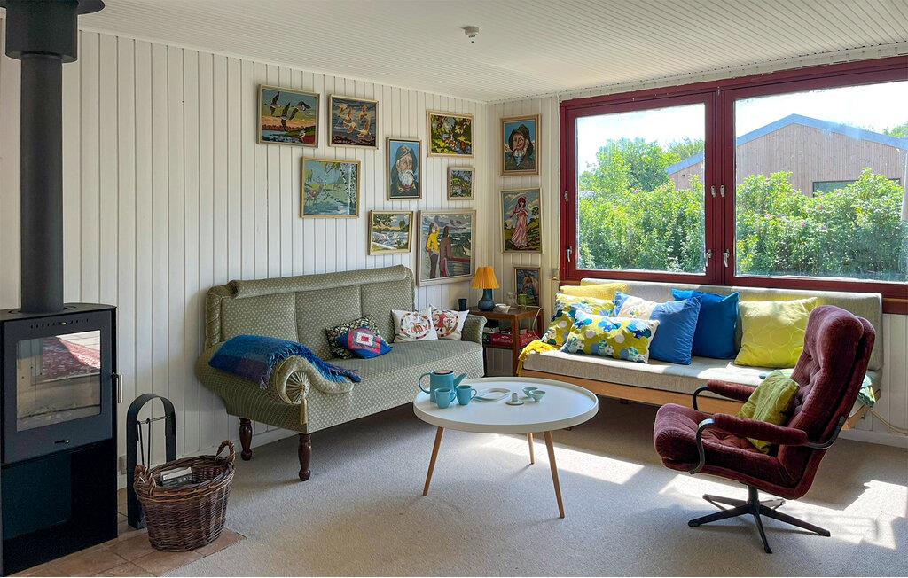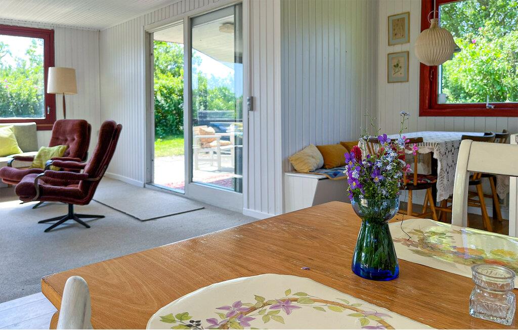 Tag familien under armen og rejs til Ejsingholm, hvor I tæt på Venø Bugt får en dejlig base i dette attraktive træhus. Indvendigt emmer det af hygge med velholdte træpaneler, nydelig, maritim kunst på væggene og store vinduespartier, der giver dejlige lysindfald til stuen og udsigt til det grønne. Skulle vinden bide lige vel meget fra sig, er det bare at fyre op i brændeovnen, der giver en skøn, knitrende varme til en hyggelig aftensmad og filmaften i sofahjørnet efter en dejlig feriedag.