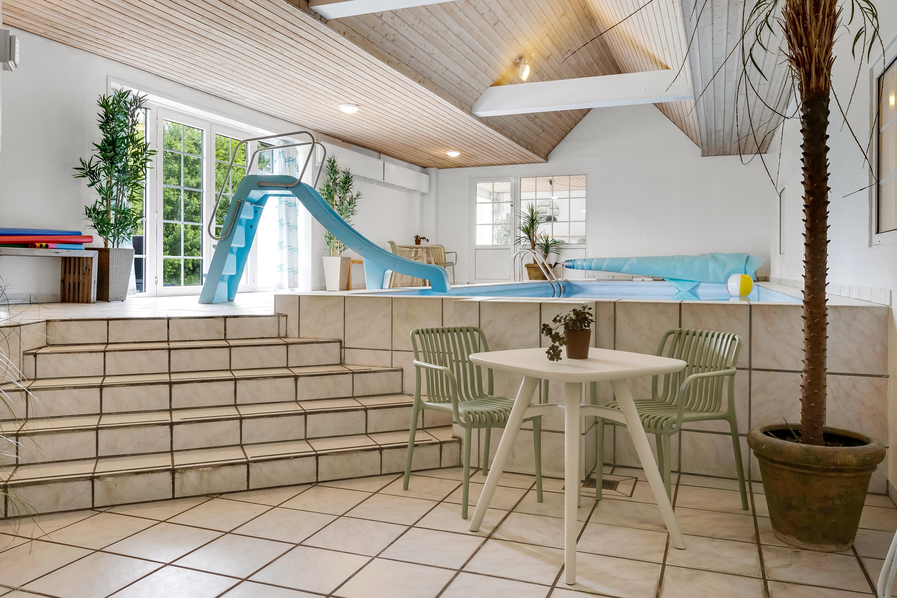 Børnenes favorit er dog den store swimmingpool med tilhørende vandrutsjebane og indendørsspaen, der kan rumme op til 4 personer, sikrer, at du kan slappe af og forkæle dig selv efter en lang dag fyldt med aktiviteter.