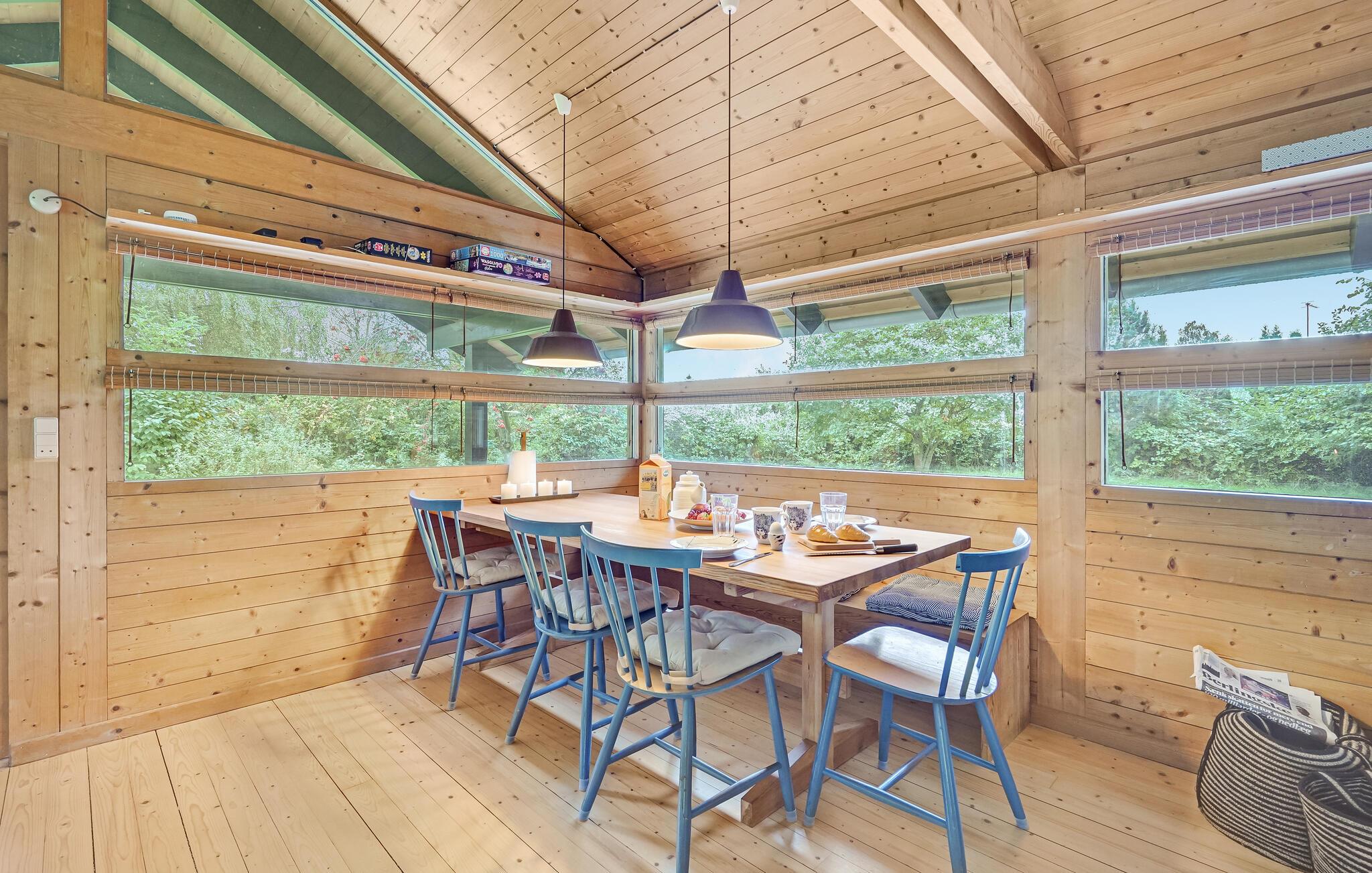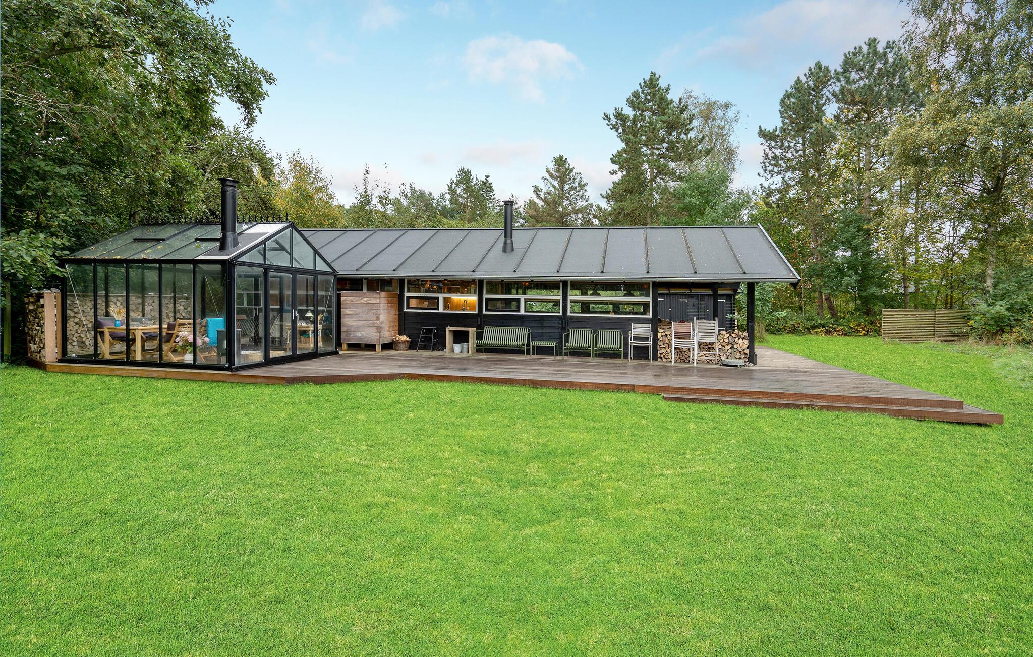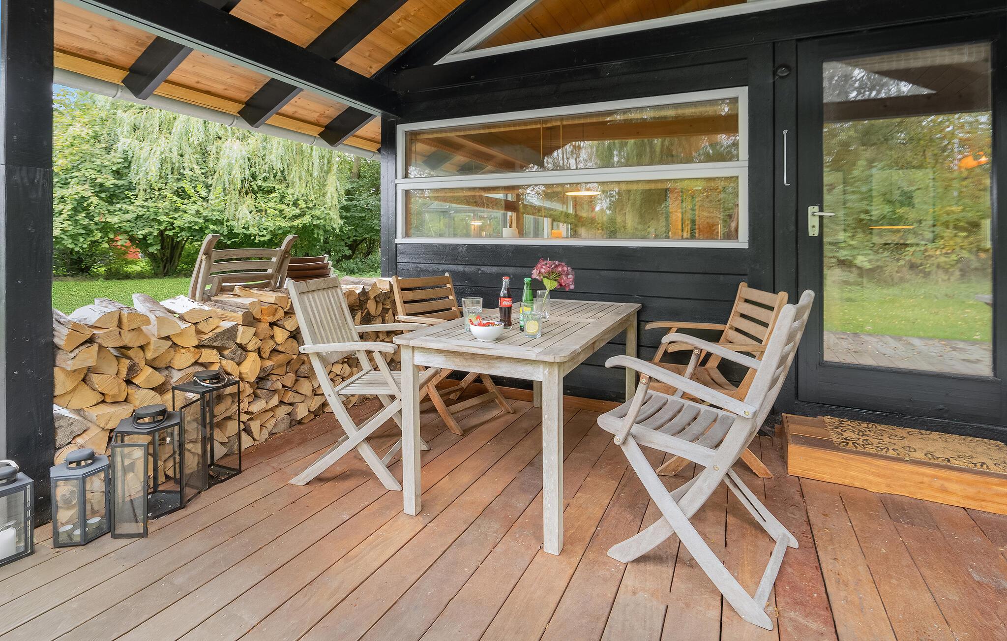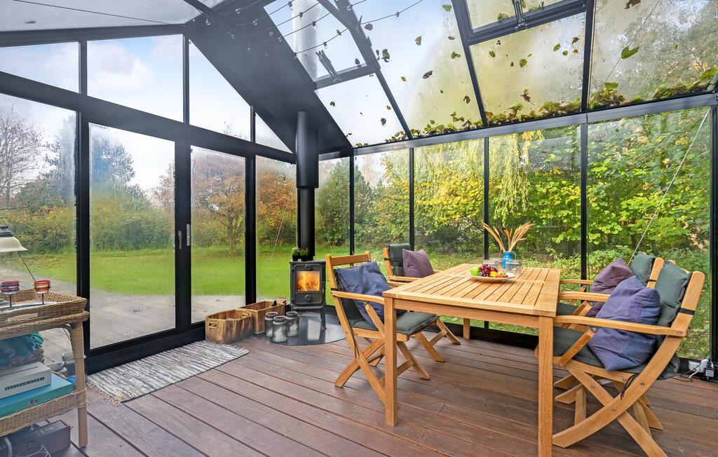 Træd ud på den smukke terrasse om morgenen med en kop kaffe, og nyd de første solstråler. På køligere dage er det hyggeligt at spise morgenmad i udestuen, som kan opvarmes med brændeovn. Den grønne have indbyder også til afslapning. Fordyb jer i en god bog, mens børnene leger. Saml familien om aftenen ved grillen, og nyd den fredelige stemning.