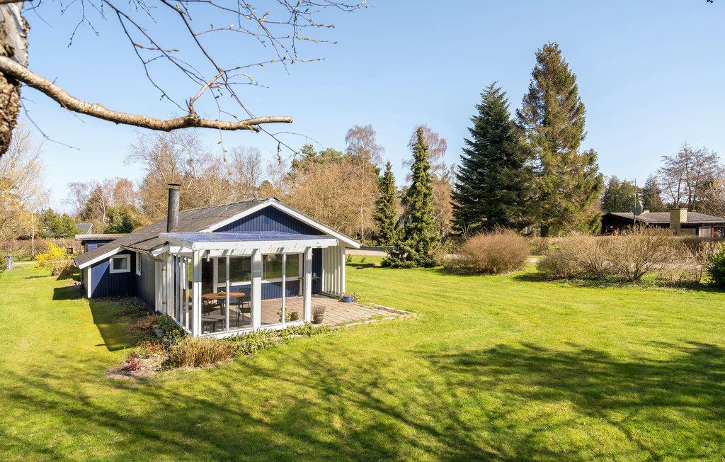 Charmerende sommerhus tæt på badestrand med lys, åben indretning og hyggelig brændeovn i smukke omgivelser.