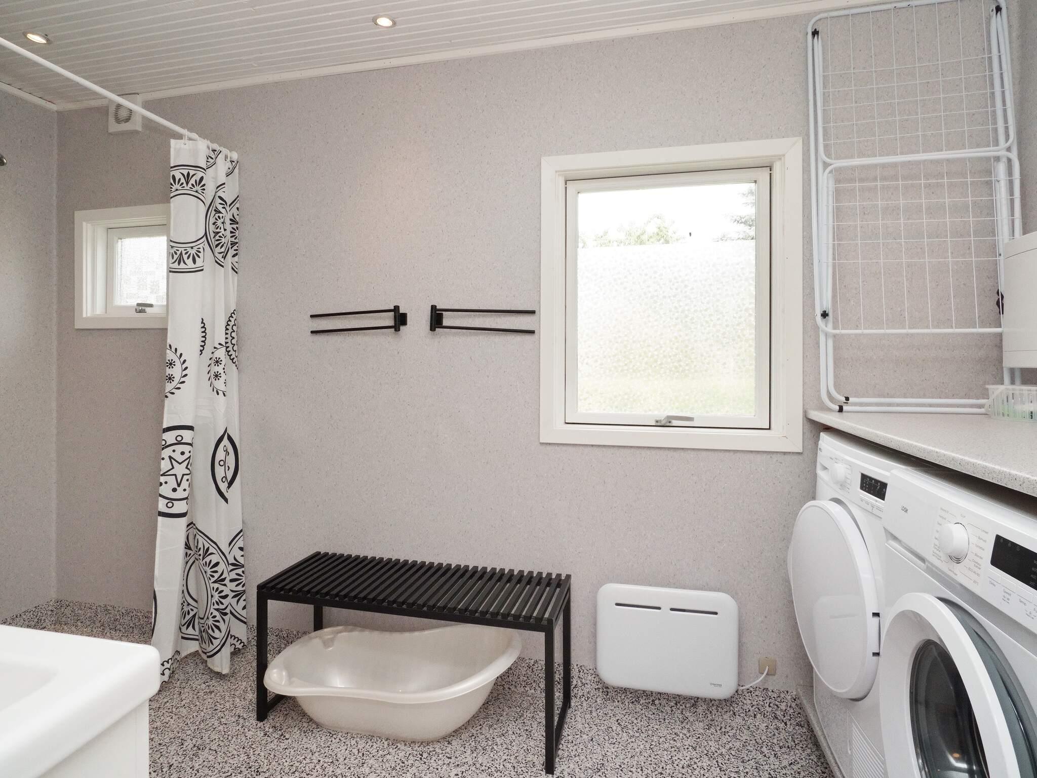 Den rummelige have giver god plads til udendørs aktiviteter og leg. En hængekøje er tilgængelig til afslapning, og en praktisk udendørs bruser er placeret på den ene side af huset. Fjorden ligger kun omkring 200 meter væk og byder på muligheder for svømning, fiskeri eller afslappede gåture langs vandet. Denne beliggenhed er perfekt for familier eller naturelskere, der ønsker at nyde et fredeligt tilflugtssted.