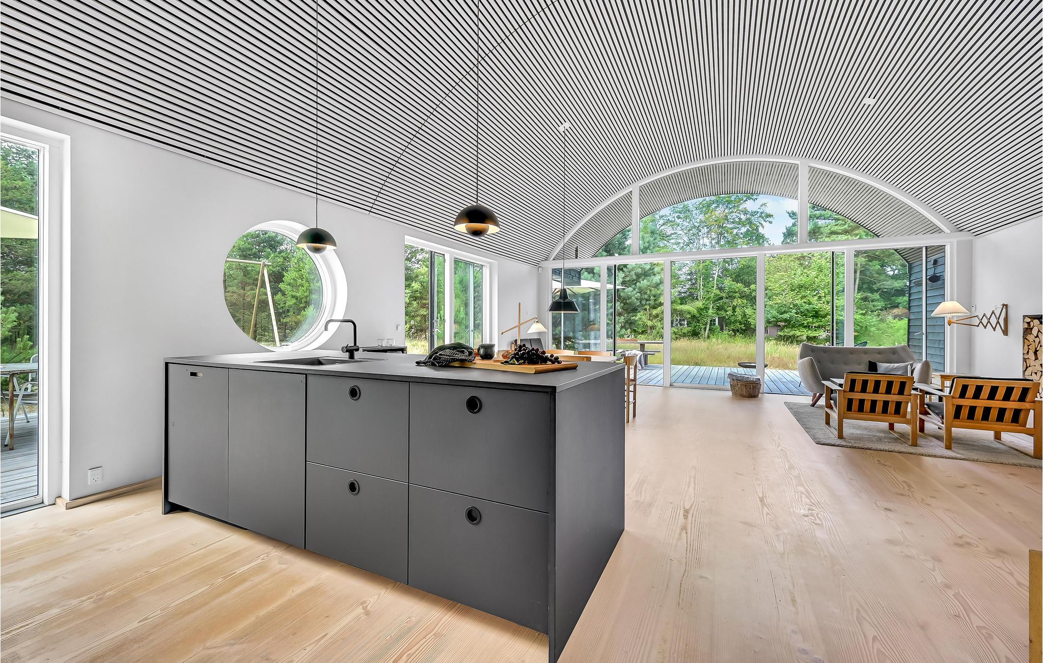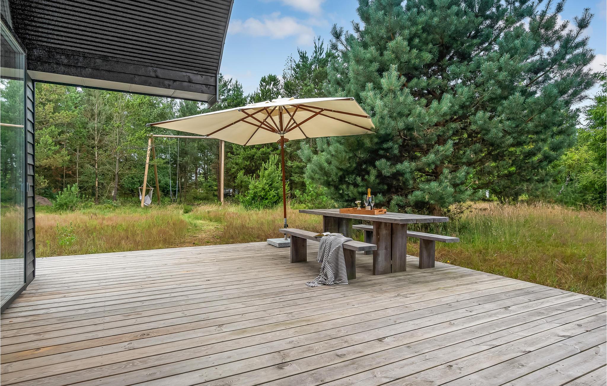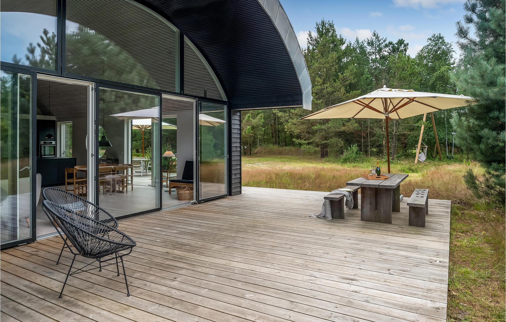 Oplev et arkitekttegnet feriehus nær børnevenlig sandstrand i Odsherred med store terrasser og moderne faciliteter.