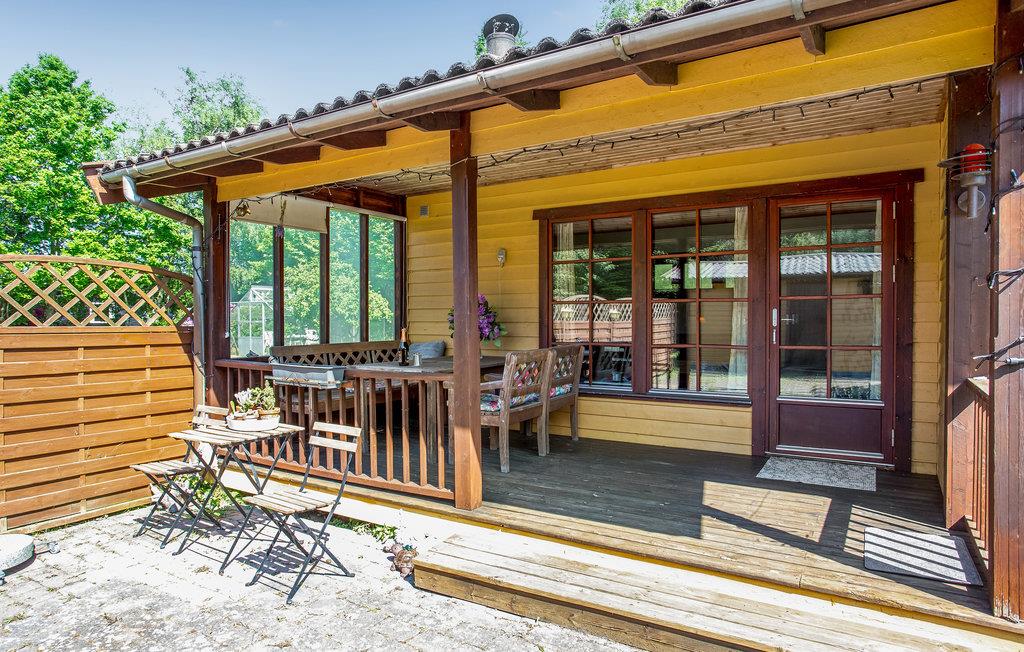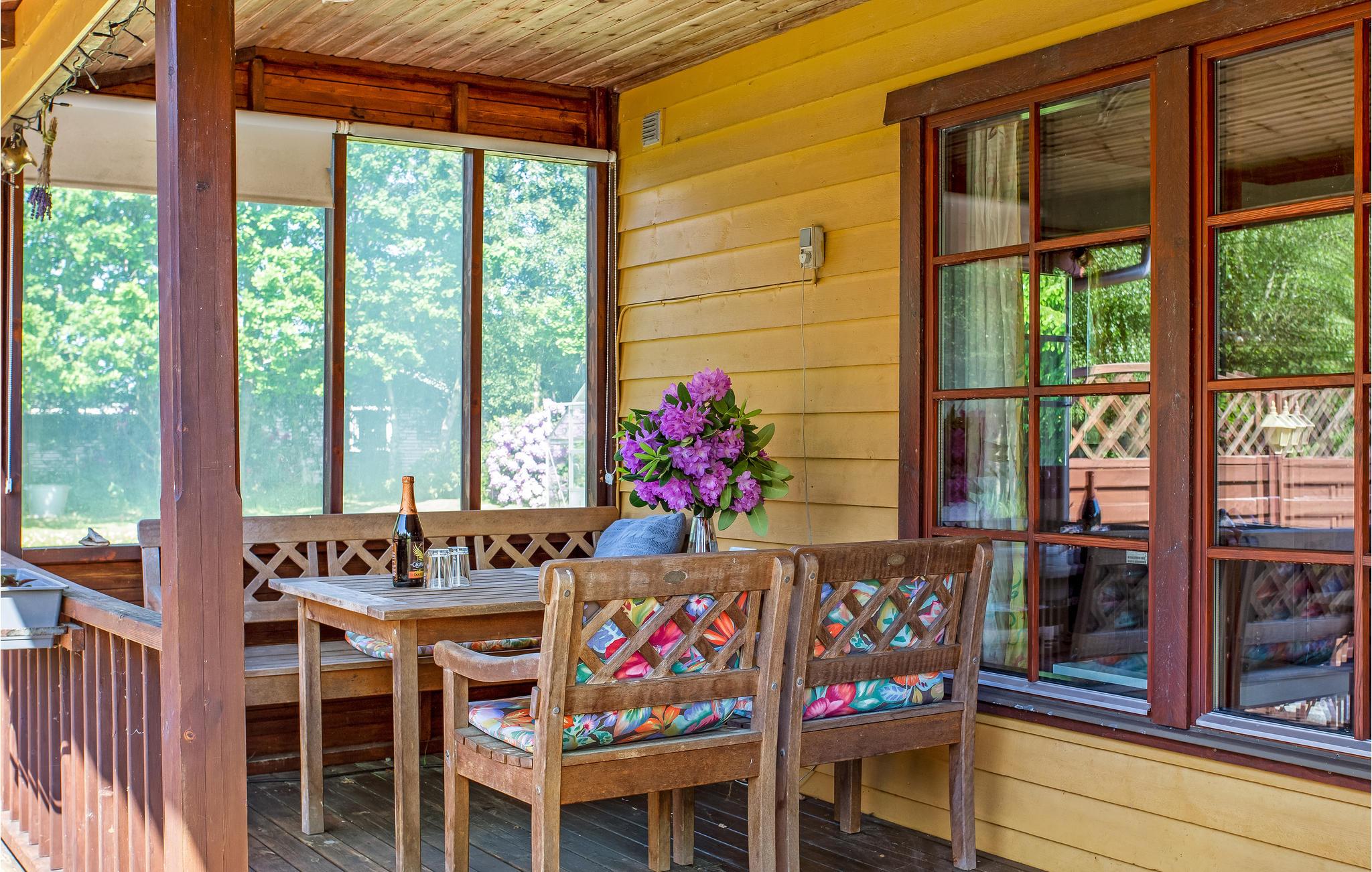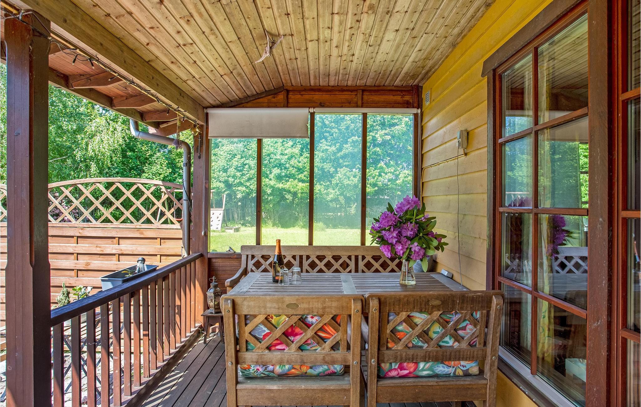 Huset ligger på en afsondret grund med græsplæner, hvor børnene kan finde masser af plads til at lege og være aktive. De forskellige udendørsspil garanterer masser af sjove timer i det fri. Den fine veranda er hyggelig, når I vil spise udenfor eller bare nyde aftenluften.