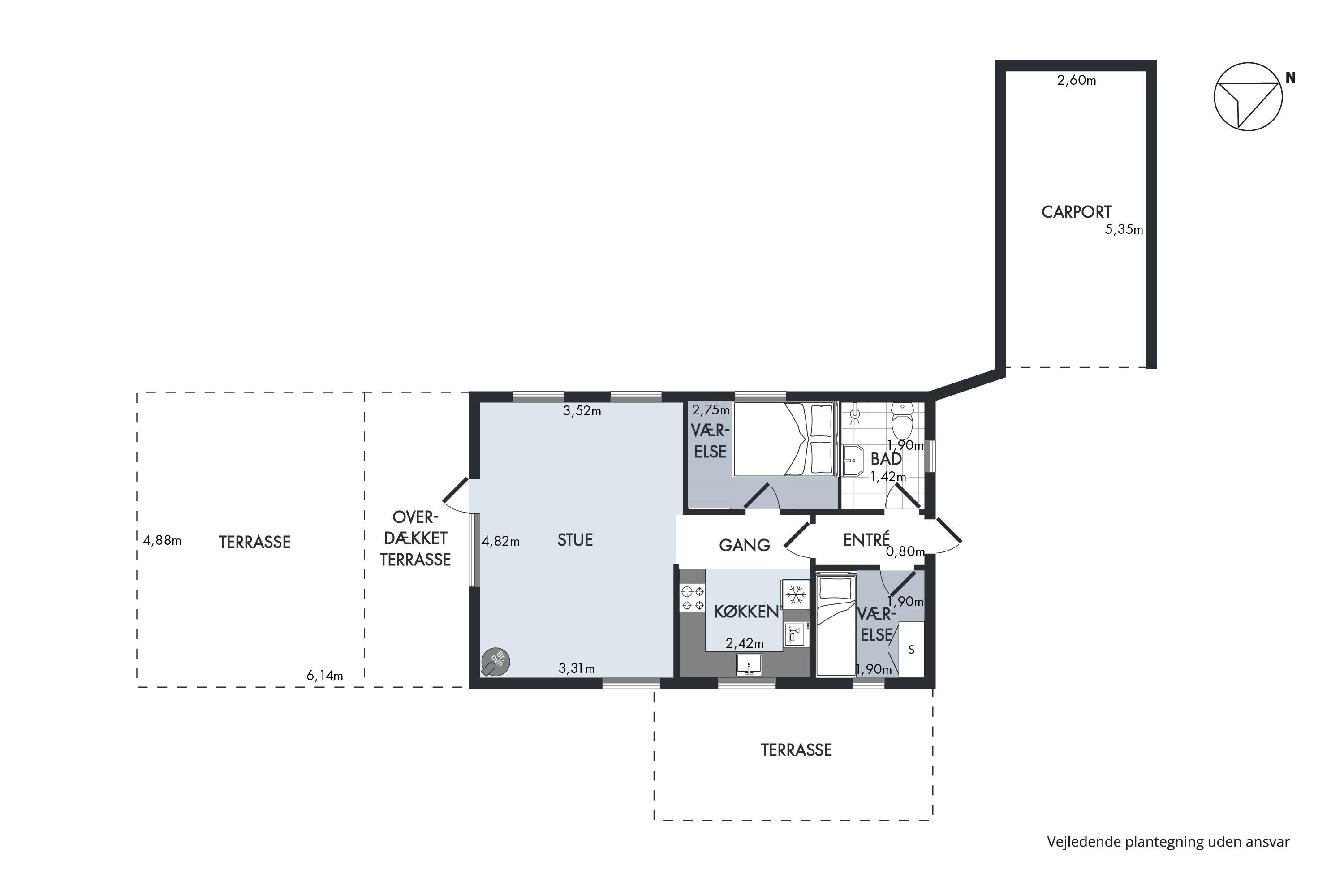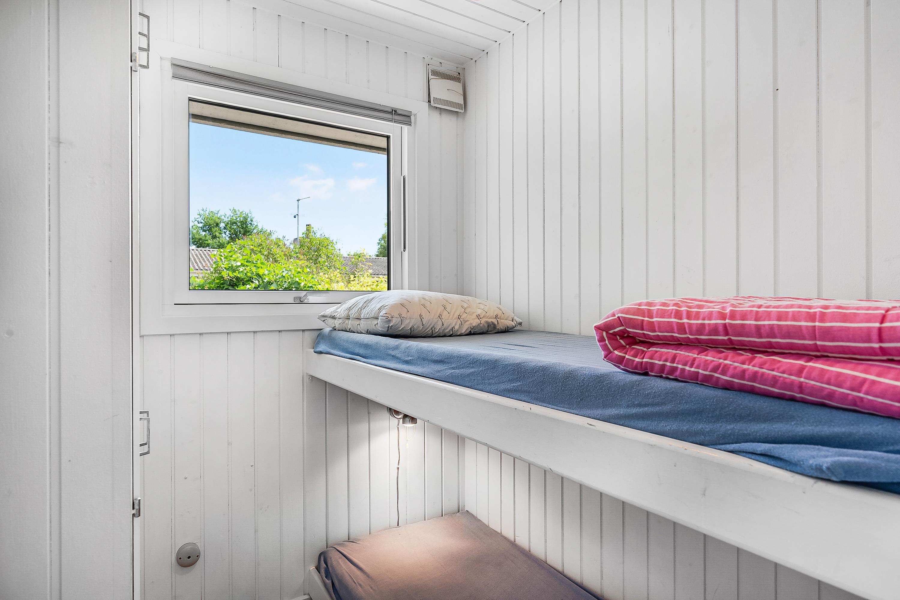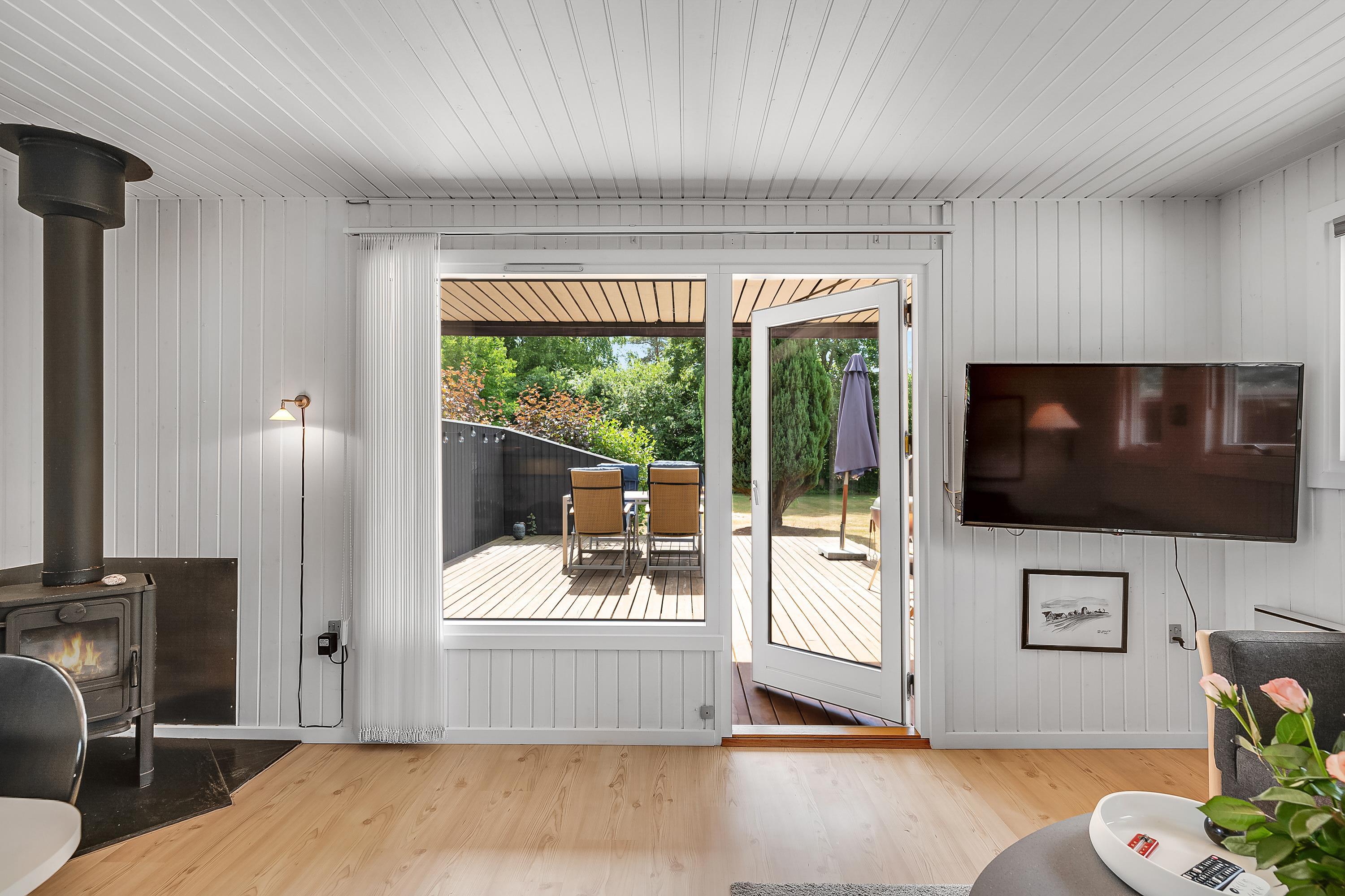 Allerede når man træder ind af døren fornemmer man den hyggelige sommerhusstemning man finder i huset. Her finder man en hyggelig og velmøbleret stue med brændeovn og med udgang til en rigtig skøn terrasse med havemøbler. I forbindelse med stuen finder man den hyggelige køkkenafdeling med b.la. opvaskemaskine. To mindre soveværelser, heraf er det ene med to enkeltsenge og det andet værelse er med køjeseng. Alle senge er 90 cm. Pænt badeværelse med bruseniche og gulvvarme. Der er internet i huset og TV foregår via chromecast. Det er tilladt at medbringe en hund. Huset er beliggende på en skøn grund, velegnet til leg og boldspil og udendørs hygge. Der er dejlige terrassearealer med havemøbler, liggestole, parasol og grill og så tager det blot 5 min til fods, at komme ned til stranden.
