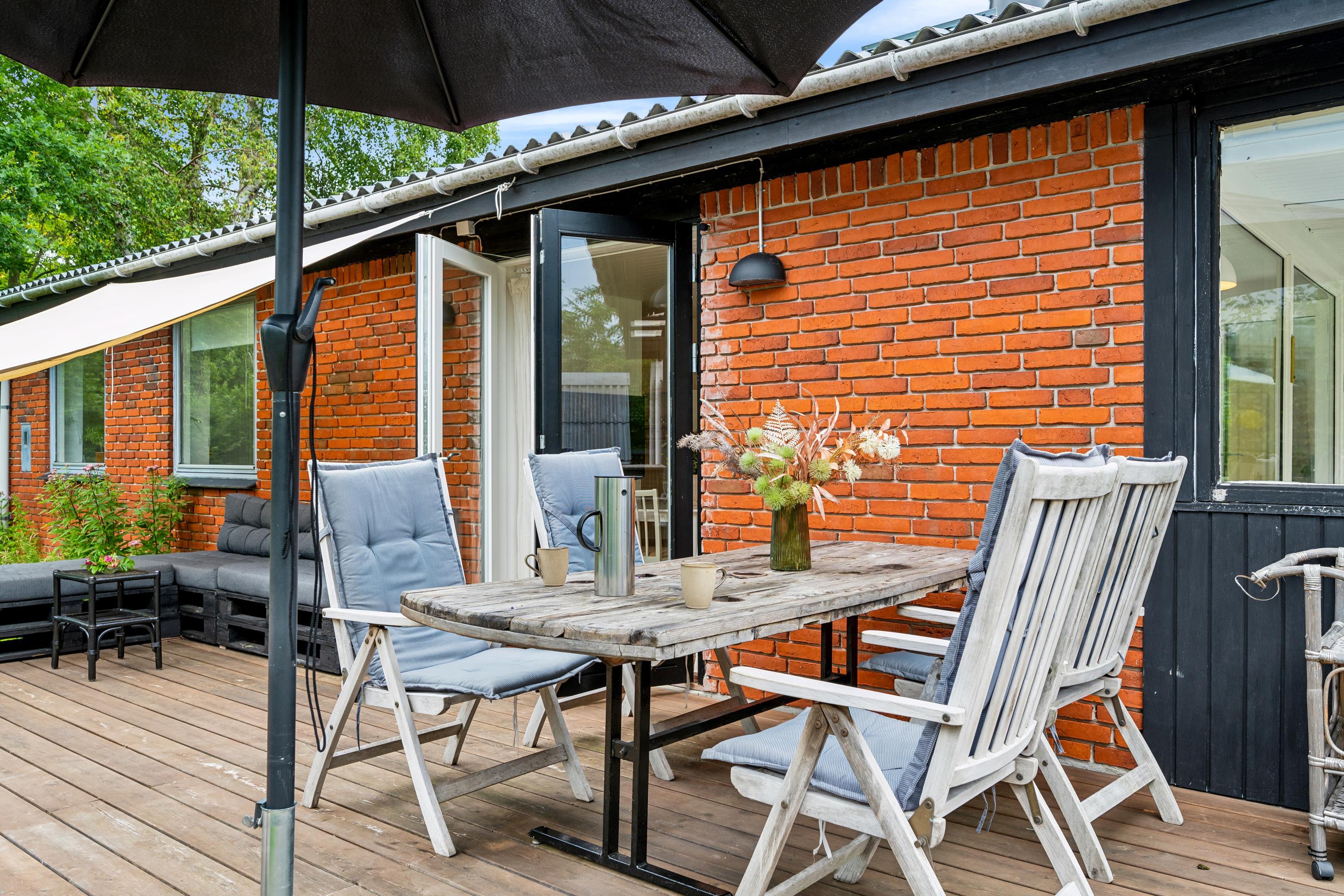 Hyggeligt feriehus tæt på Elsegårde Strand med brændeovn, udestue og stor terrasse.
