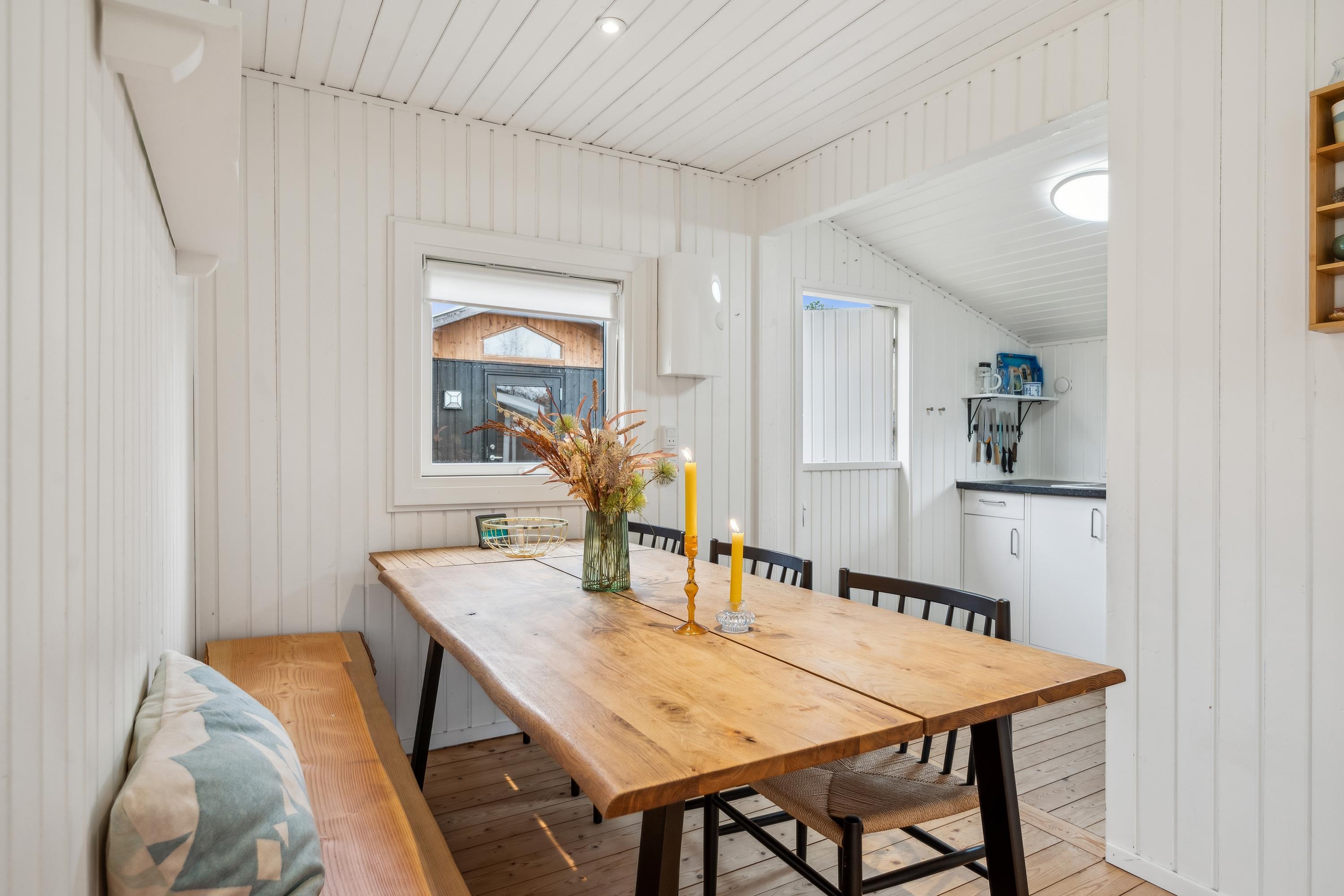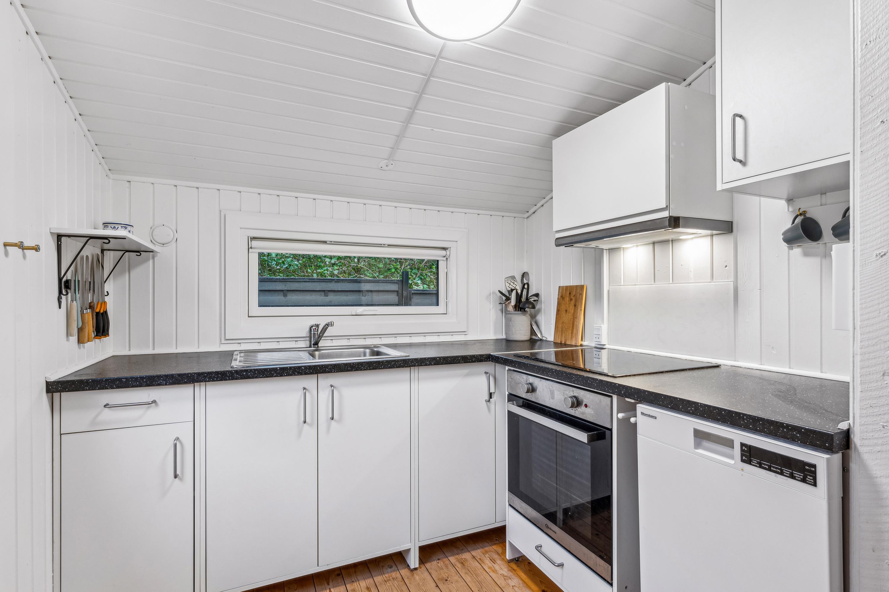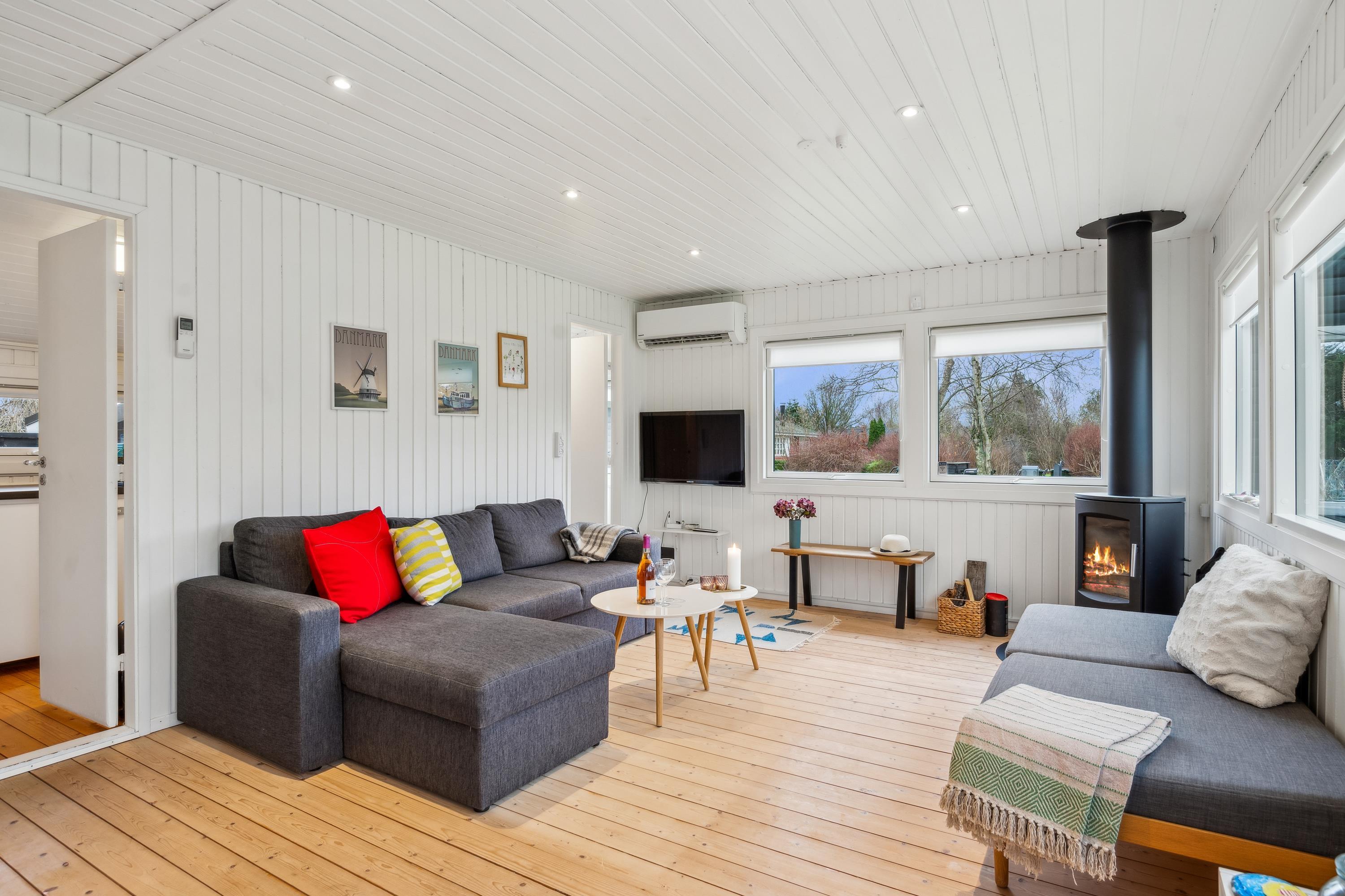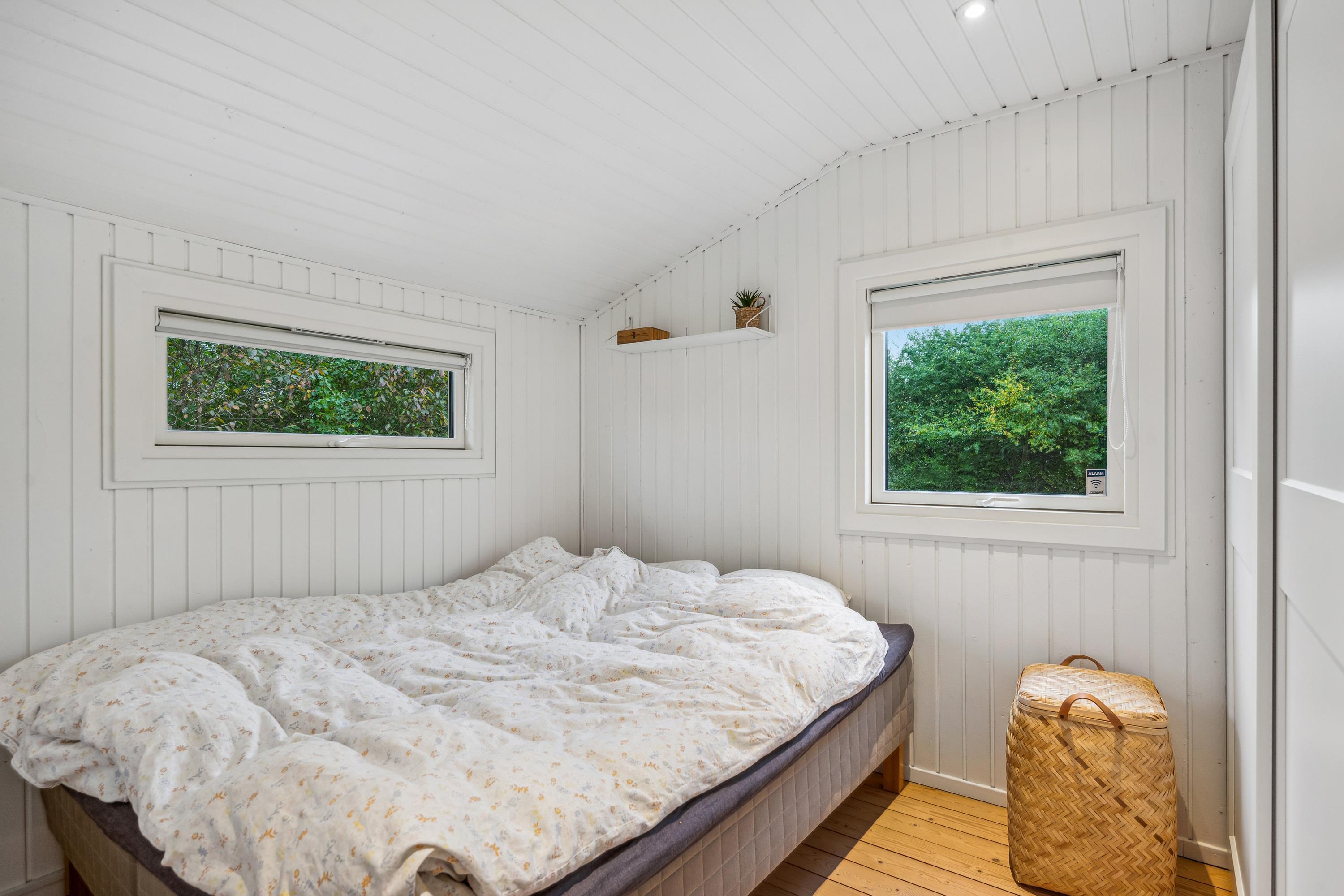 Blot 5 min gang fra stranden finder man dette ældre, men hyggelige feriehus. Huset indeholder en lys stue med brændeovn og varmepumpe samt et hyggeligt spisehjørne. Fra stuen er der udgang til en overdækket terrasse. Mindre, men funktionelt køkken med b.la. opvaskemaskine. Fra køkkenet er der udgang til et stort åbent terrasseareal med havemøbler og grill og udekøkken. Pænt badeværelse med bruseniche. Der er internet i huset og TV foregår via chromecast/streaming. Husets sovepladser finder man i to soveværelser samt i et nyere anneks, hvor man finder to enkeltsenge. På grunden findes der et hyggeligt shelter samt et vildmarksbad, hvor man kan nyde en lun sommeraften og lytte til havets brusen.