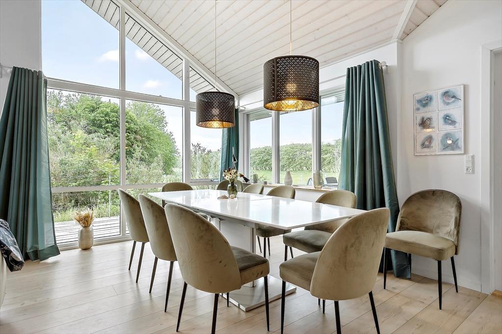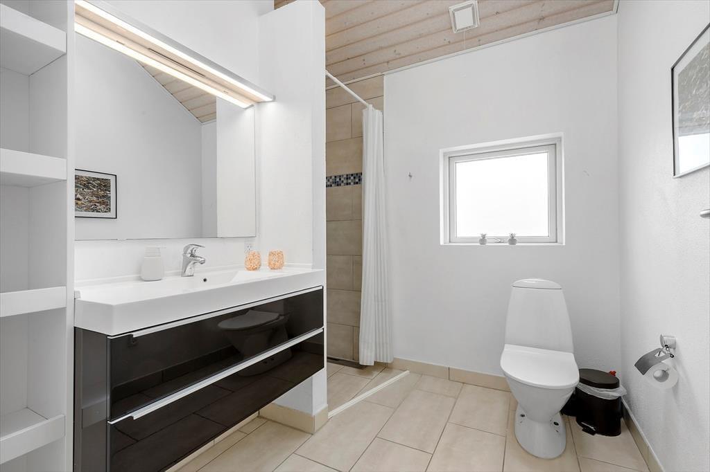 Tæt på rigtig god strand, finder du dette store sommerhus med mange aktivitetsmuligheder. Huset er indrettet med aktivitetsrum hvor du kan spille billard med vennerne. Så er der åbent køkken og stue, og naturligvis spisestue, så her kan alle deltage lige meget om der skal laves mad eller spilles spil. Huset har en dejlig terrasse, som ligger lige ud til åbne marker, så der er altid spændende at følger med i naturens gang via terrassen eller hvis vejret er til indendørs ophold, så kan du sidde og se ud af de store vinduer. Der er 5 værelser og to store badeværelser. Det ene badeværelse er med spa bad, så her kan der hygges videre om aftenen.