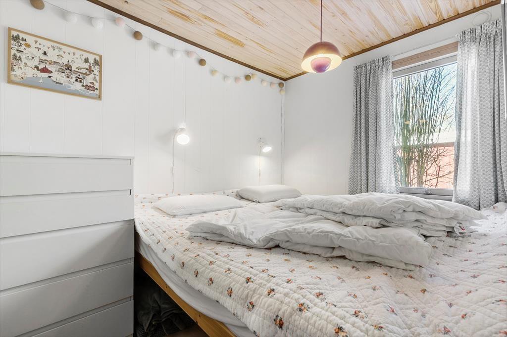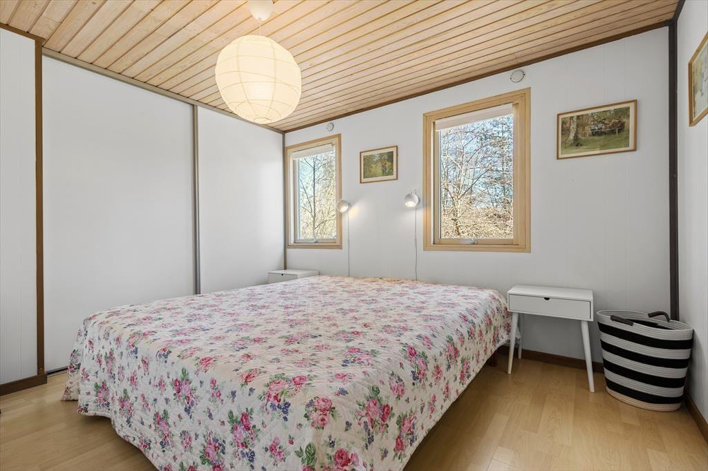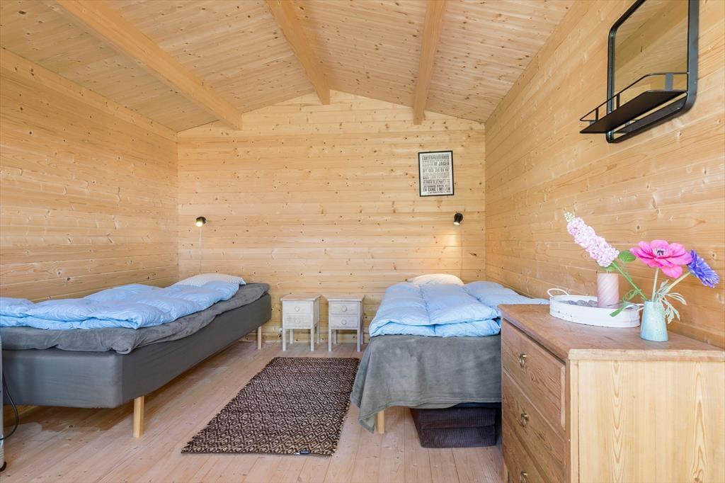 300 meter fra Kattegats brusende bølger og for enden af grusvejen finder du dette hyggelige feriehus, hvor du kan nyde roen og udsigten over landskabet. Slap af på terrassen, mens du slikker sol, griller eller nyder en kop kaffe. Når mørket falder på, kan I hyggesnakke over bålet, mens børnene leger i shelteren. Indenfor finder du en rummelig stue med brændeovn, tv og en god spiseplads, hvor hele familien kan samles. Det lille, fine køkken har udgang til grunden, og badeværelset har bruser. Huset har to soveværelser med dobbeltseng i hver, og fra stuen er der adgang til terrassen, hvor der også er et anneks med to enkeltsenge.