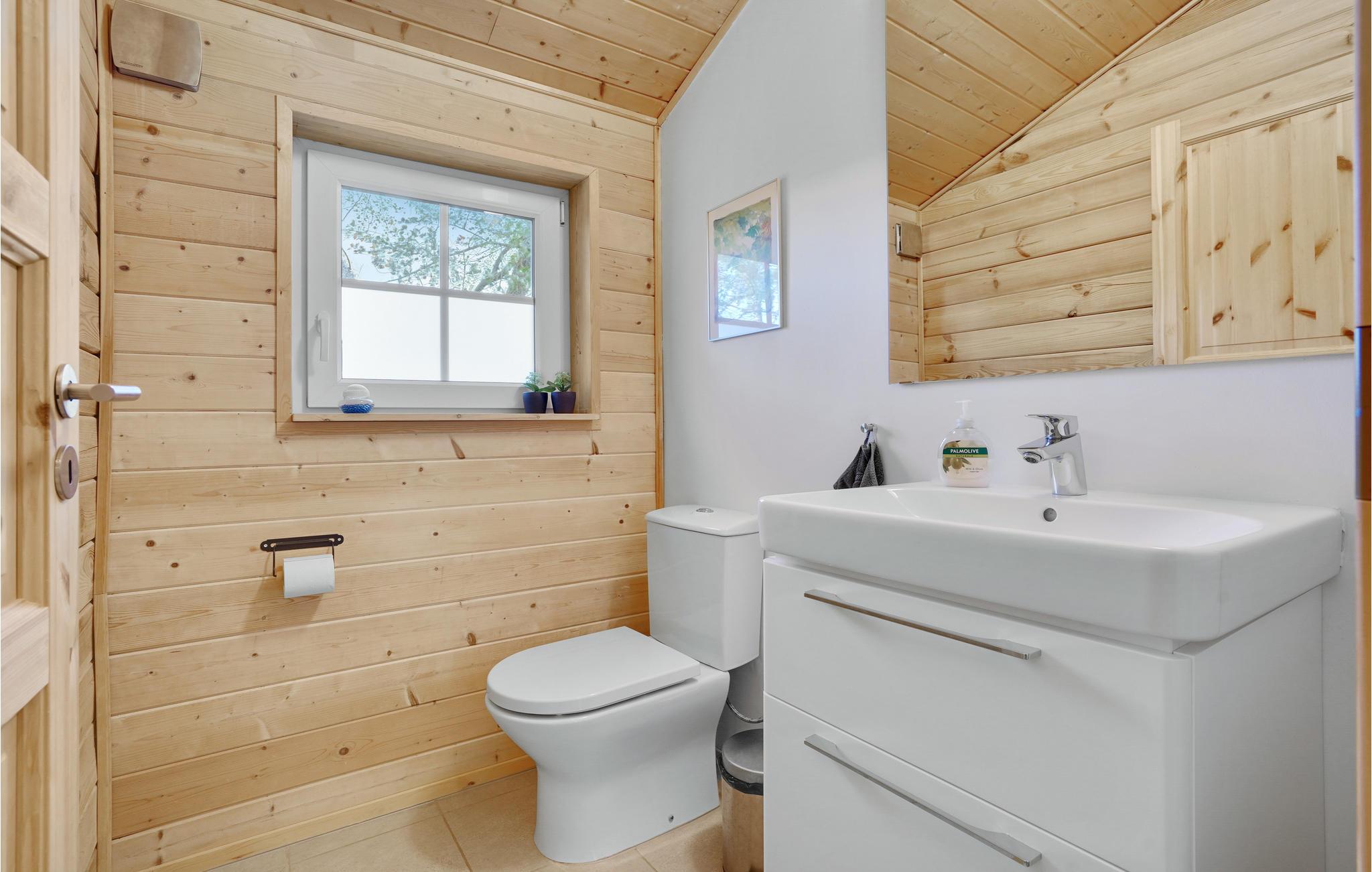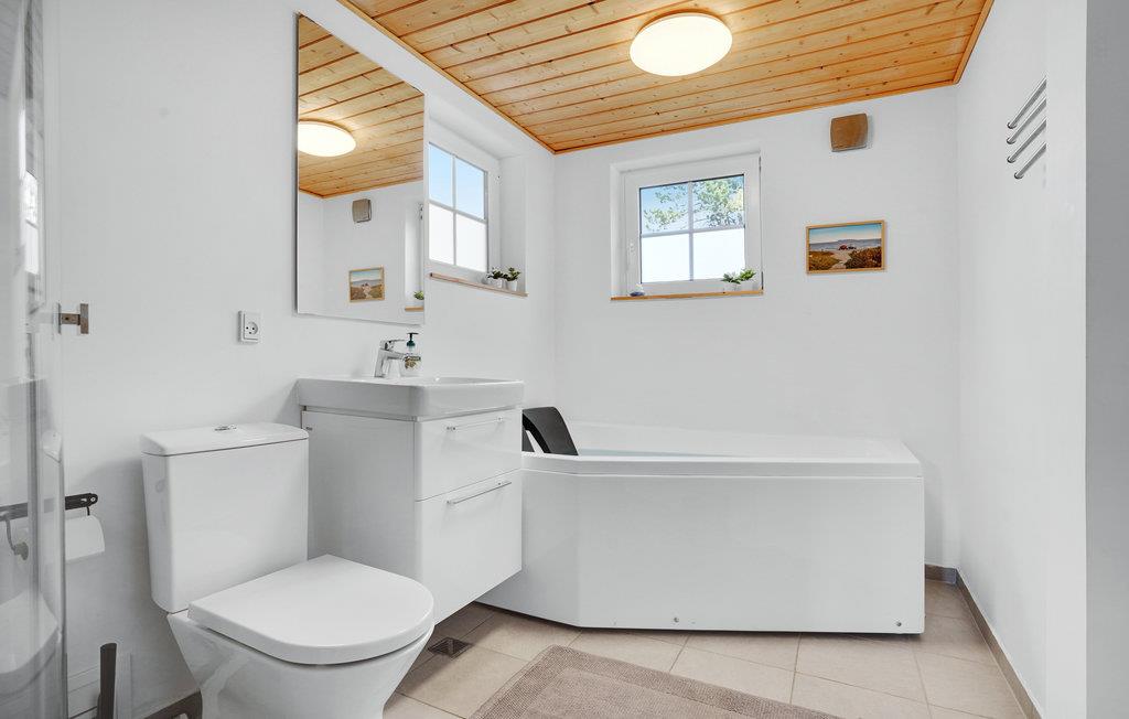 Huset har to nye flotte badeværelser, det ene med karbad, som er et lækkert sted at lade aftenen gå på hæld i det varme vand.