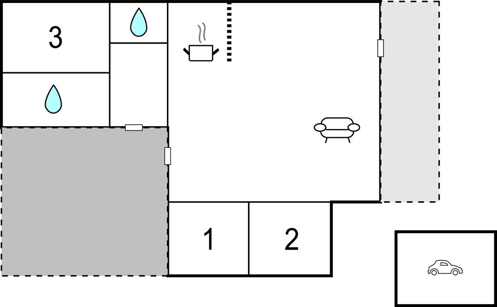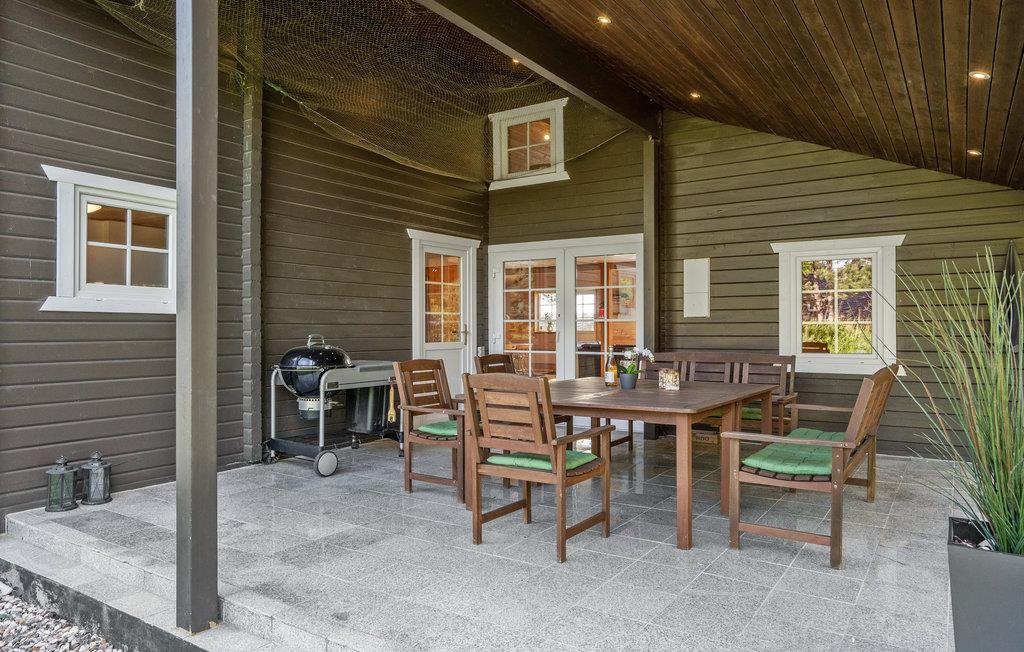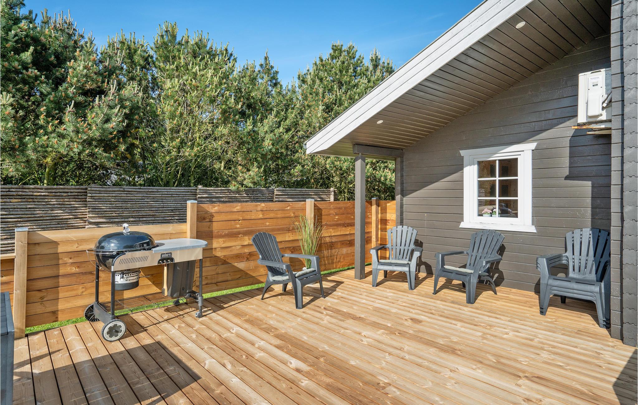 Udgang fra stue/køkken området til en dejlig stor overdækket terrasse. Der er hurtig internet fornbindelse ( 50 / 50 mbit).