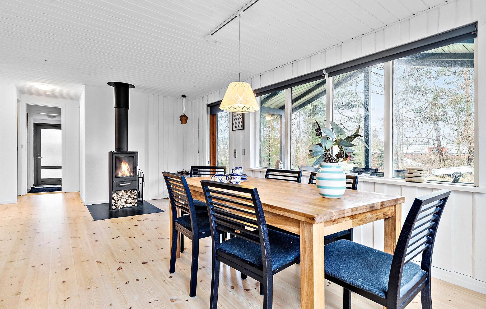 Lige syd for Ebeltoft ligger dette hyggelige og velholdte træhus, der danner rammen om en herlig familieferie tæt på stranden. Indretningen fremtræder varmt og velholdt med tydelige træelementer, et flot lysindfald og gode indretningsløsninger. Hyg jer med dagens gøremål i køkkenet - tag jer god tid med madlavningen, spil kort ved spisebordet eller find jer godt til rette i sofaen med en god bog eller en spændende podcast. På de varme dage kan I nyde måltiderne ude på terrassen, inden I fyrer op i vildmarksbadet og glider ned i de varme bobler under stjernehimlen. I har flere terrasser at vælge mellem, så I kan finde sol, skygge og læ efter behov i løbet af dagen.