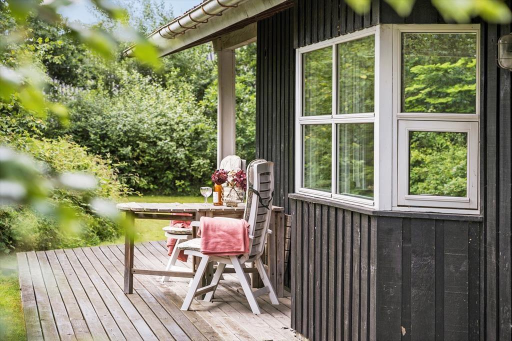 Udenfor venter en dejlig stor terrasse, hvor I kan nyde morgenkaffen med udsigt til den grønne have eller grille jeres aftensmad, mens solen går ned over træerne. Her er masser af plads til leg og afslapning – måske en omgang kroket på græsplænen, en god bog i skyggen eller blot tid til at lytte til fuglene og lade skuldrene sænke sig. På de lune sommeraftener kan I tænde op i grillen, finde tæpperne frem og nyde feriestemningen under åben himmel.