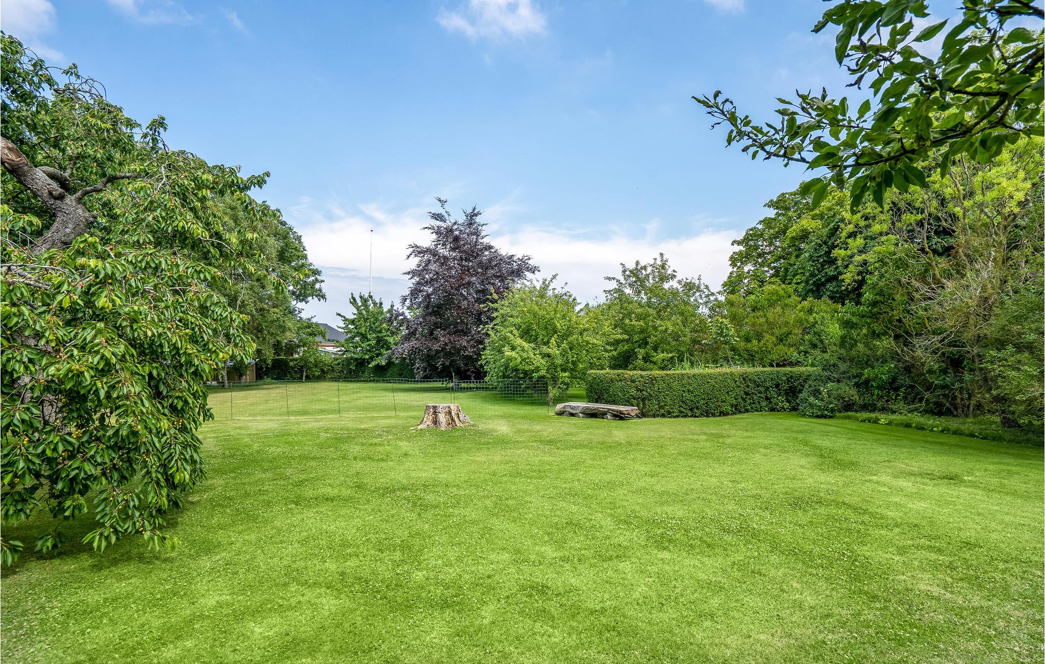 Gennem de store vinduespartier har I en vidunderlig udsigt over haven. Spis sammen i udestuen eller på terrassen, hvor I både finder solrige og skyggefulde steder. En sandkasse er til rådighed for de mindste.