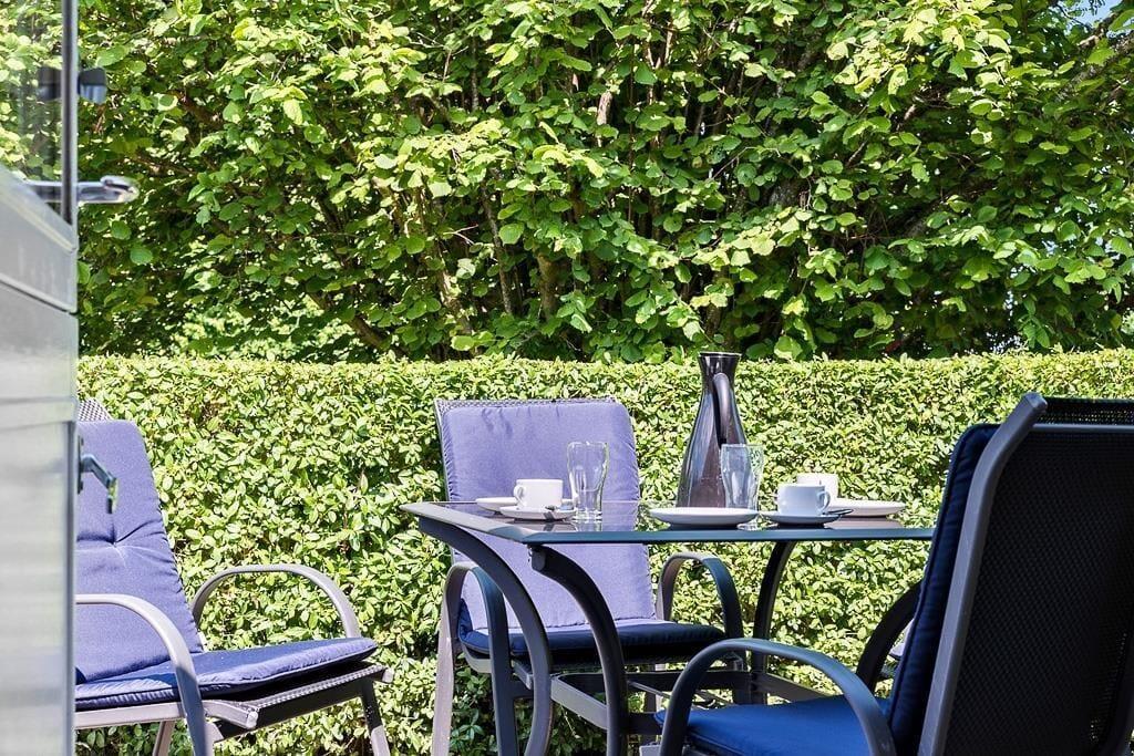 Sommerhuset er beliggende på en 1000 m2 grund med dejlig have, med flere hyggekroge. Der er en skøn delvis overdækket terrasse. Ved feriehuset er der havemøbler, grill, parasol og liggestole.