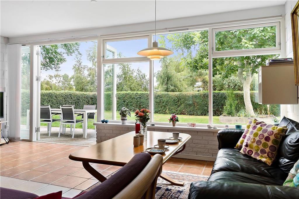Feriehuset er beliggende på en 600 m2 grund med dejlig åben terrasse og stor græsplæne. Ved sommerhuset er der havemøbler og grill.