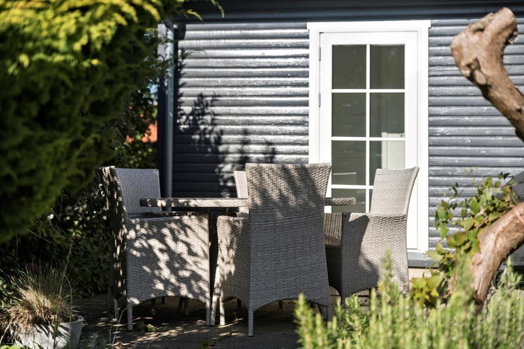 Udendørs: Dejlig have med både øst- og vestvendte terrasser.
