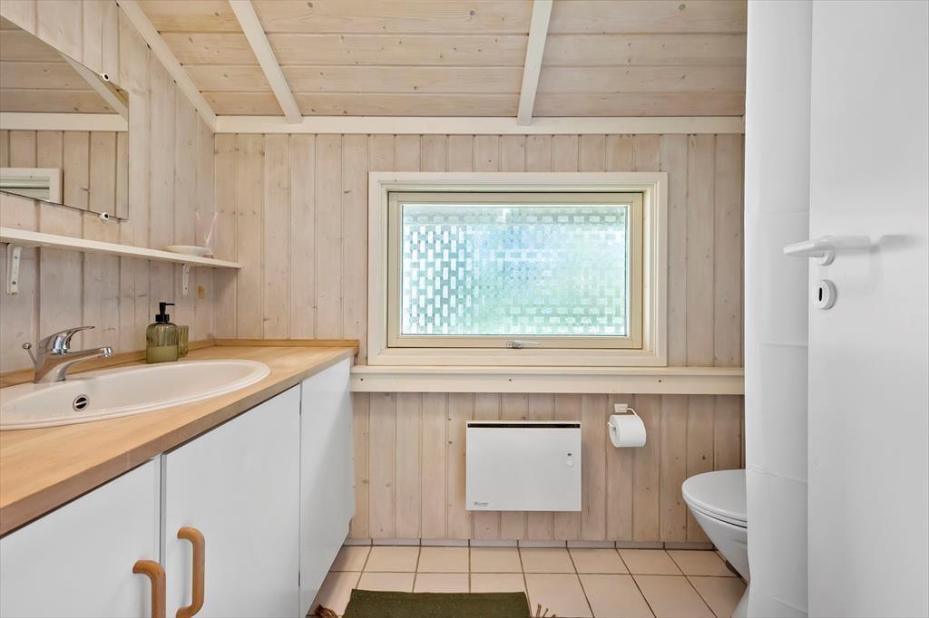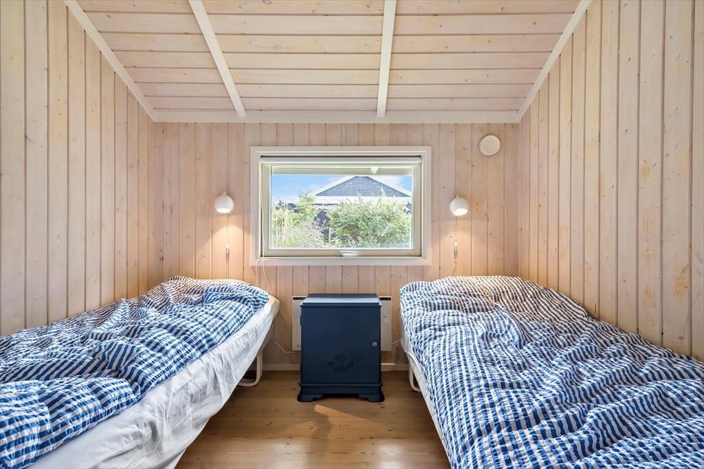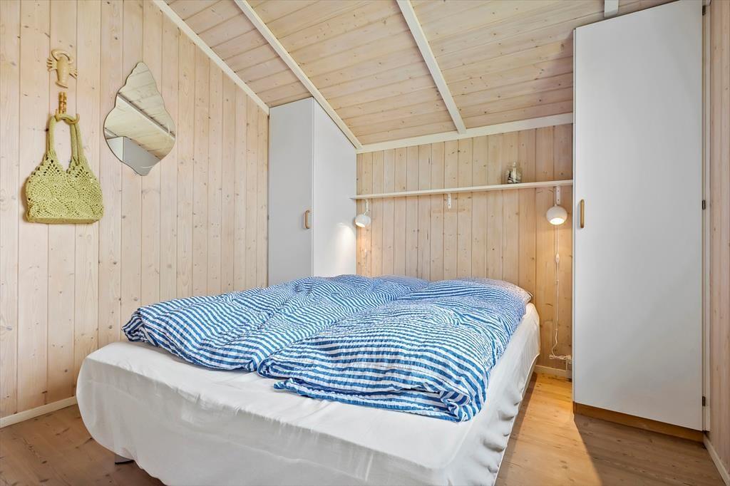 Velkommen indenfor: Sommerhuset indeholder entre med fordelingsgang til stue og værelser. Kombineret opholds/spisestue med moderne indretning og brændeovn, hvor du kan tænde op på de køligere dage - og lade feriestemningen brede sig. Alkove med 1-2 børneopredninger. Fra stuen udgang til stor solrig terrasse. Helt nyt åbent køkken med indbygget kogeplade og ovn. Desuden køleskab, fryser og opvaskemaskine. Sommerhuset råder over 2 soveværelser, 1 med 1 dobb. seng (160x200), 1 med 2 enkeltsenge (90x200). Et dejligt badeværelse med et flot nyt badmiljø med indbygget håndvask og en kombineret vaskemaskine/tørretumbler. Bruseniche, toilet og der er desuden gulvvarme på badeværelset til ekstra komfort.