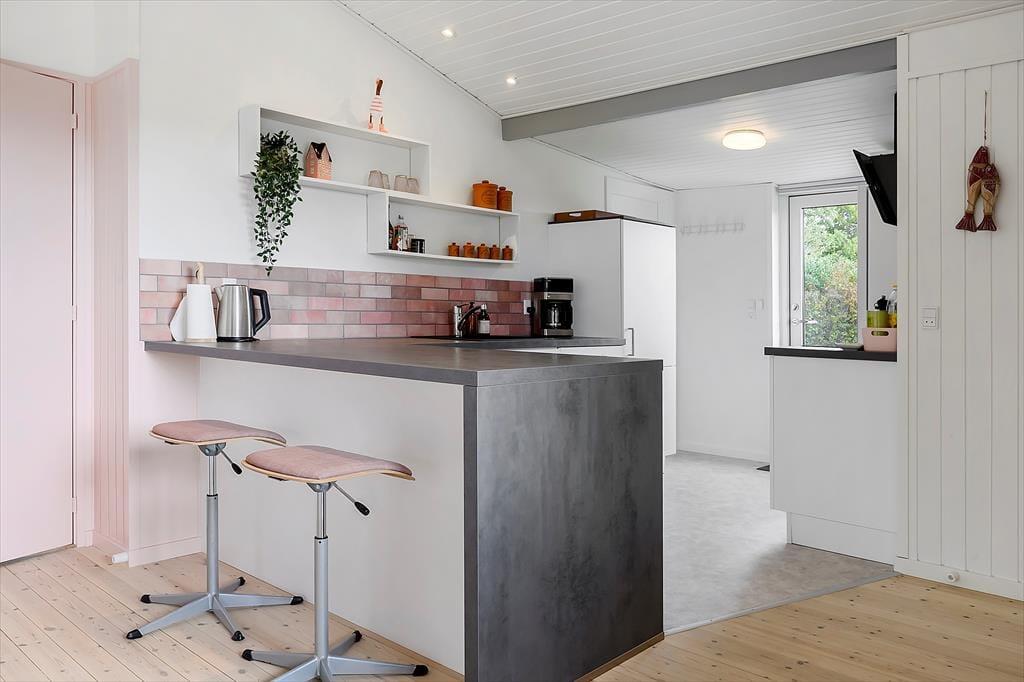 Velkommen indenfor: Straks ved ankomsten til dette dejlige og moderne indrettede sommerhus, fornemmer du en god og hyggelig atmosfære. Den store opholdsstue i forbindelse med det åbne køkken, gør at huset føles meget rummeligt. Fra stuen er der udgang til den store og solrige terrasse, der omkranser huset og hvorfra man kan nyde de rolige omgivelser. Huset råder over 3 soveværelser med hver en dobbeltseng 2x (180x200) 1 x (140x200). Det veludstyrede køkken råder over køleskab, fryser, komfur med ovn, opvaskemaskine og hele 2 badeværelser med brusenicher, håndvask, toilet samt gulvvarme er med til at fuldende komforten i huset.