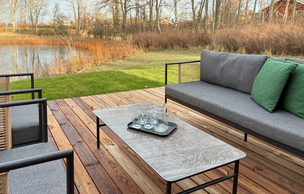 Træd ud i den beskyttede, træbeklædte gårdhave og find jeres yndlingsplads udenfor. Tilbring afslappede timer på loungemøblerne, og nyd den frie udsigt over den lille sø og det omkringliggende landskab. Udnyt den dejlige beliggenhed til afslappede aftener og rolige stunder under åben himmel.
