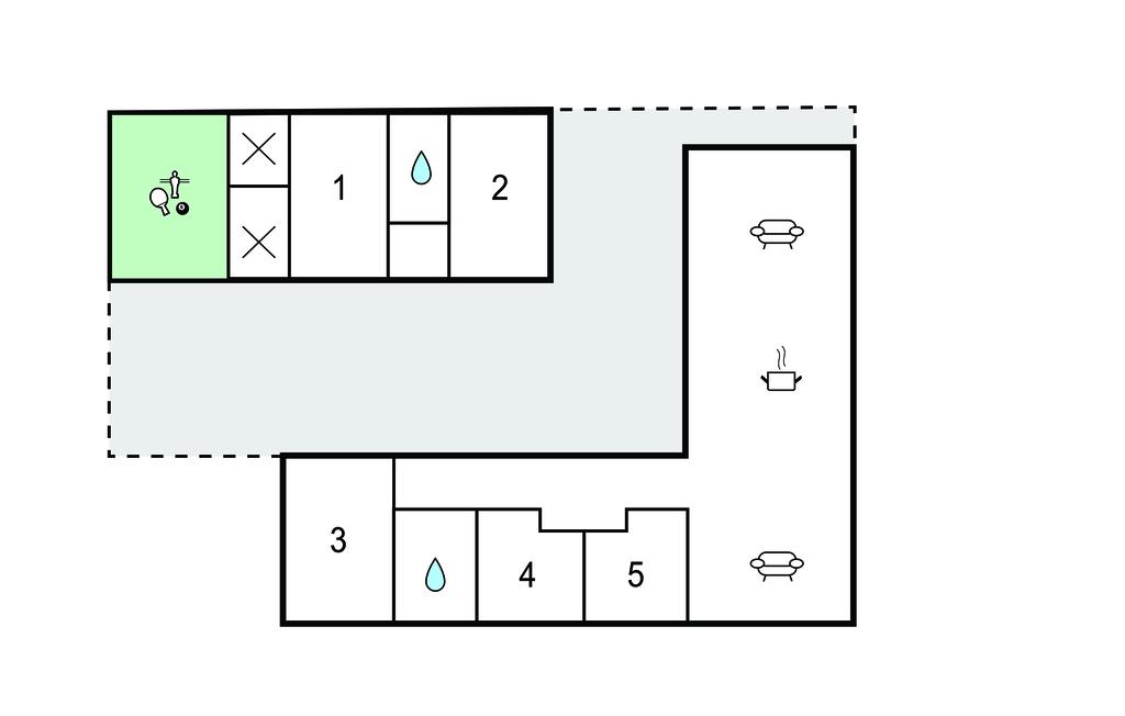 Nyd den behagelige stemning i det åbent indrettede hus. Tag plads i de komfortable sofaer, og nyd udsigten til det grønne. Høje lofter, afdæmpede farver og nøje udvalgte materialer skaber en rolig og elegant atmosfære. Brug det lange spisebord til fælles måltider eller lange aftener i hyggeligt samvær. Tilbered jeres måltider i det eksklusive køkken med kogeø og moderne faciliteter. Spil også en omgang billard i aktivitetsrummet med udsigt over vandet.