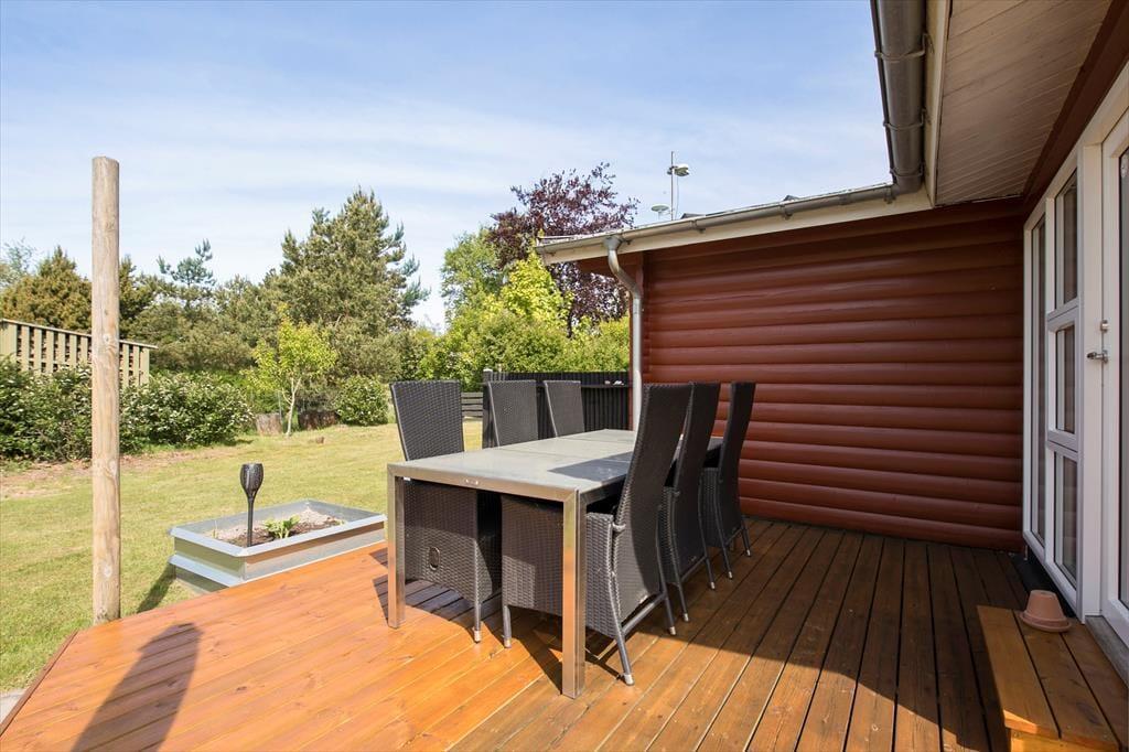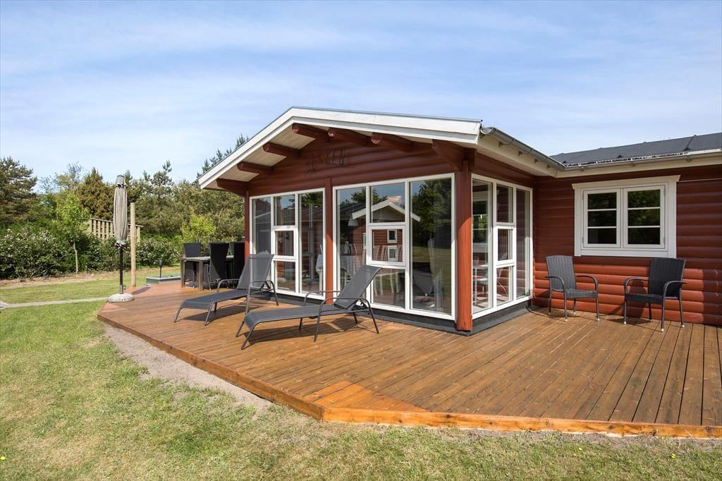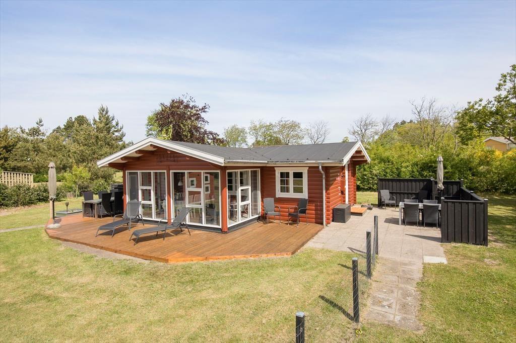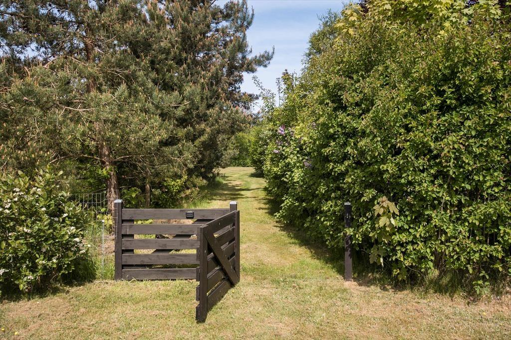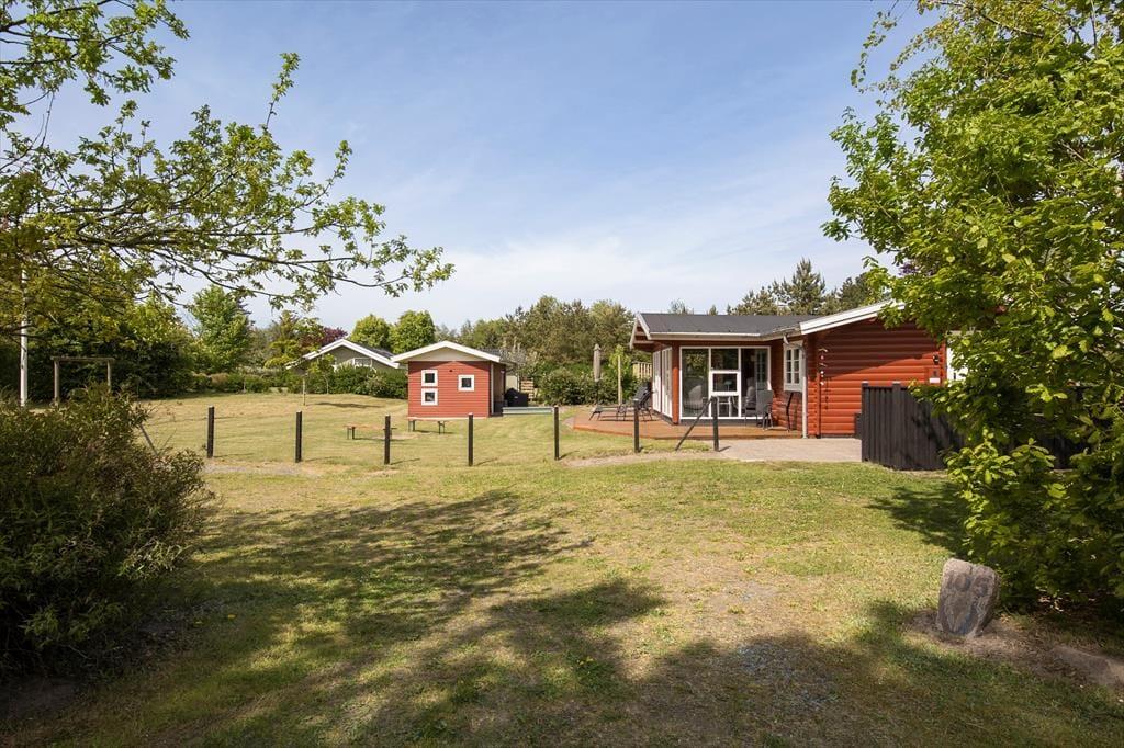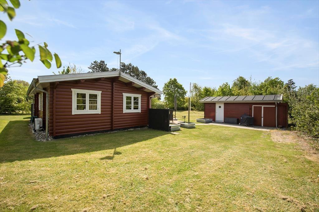 Når du træder ud på terrassen, åbenbares en helt ny verden. Omkring sommerhuset er der et dejligt udendørsområde, hvor du kan nyde solen hele dagen. Terrassen er både åben og overdækket, så du kan vælge at sidde i solen eller finde skygge, alt efter hvad humøret og vejret tillader. Og hvis du trænger til lidt ekstra hygge, er der en bålplads, hvor du kan varme dig, mens du rister skumfiduser eller bare nyder stilheden og den smukke natur omkring dig. Grunden er stor, så der er masser af plads til både afslapning og leg, og børnene vil elske at have god plads til at løbe rundt og udforske.