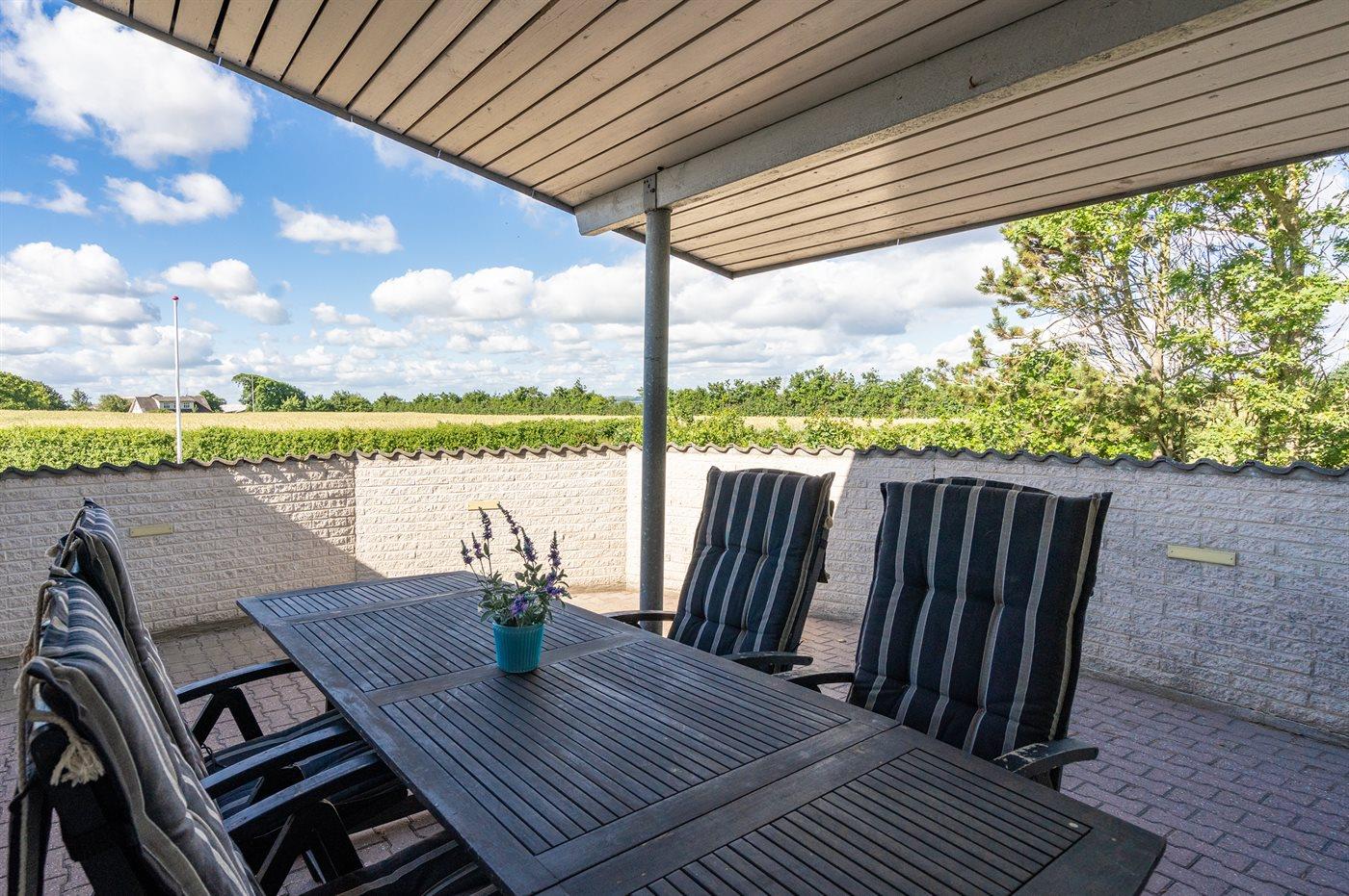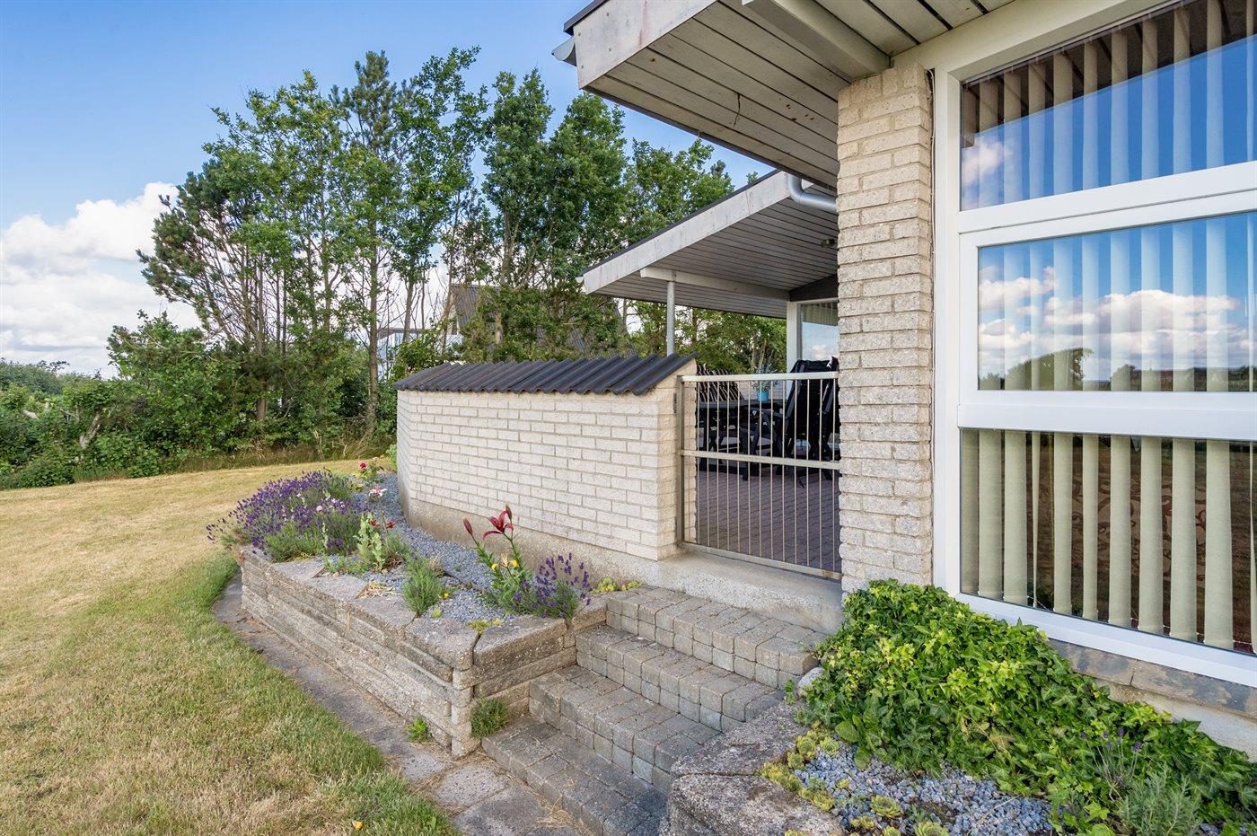 Ferieboligen er beliggende på en 1100 m² stor naturgrund. Der er 800 m til fjorden. Nærmeste forretning er beliggende i en afstand af 500 m. Der er en golfbane i en afstand af 15000 m. Til ferieboligen hører 40 m² terrasseareal. Desuden er der 15 m² overdækket terrasse. Heraf i alt 40 m² lukket terrasse. Ligeledes er der adgang til udestue. Parkering ved ferieboligen.