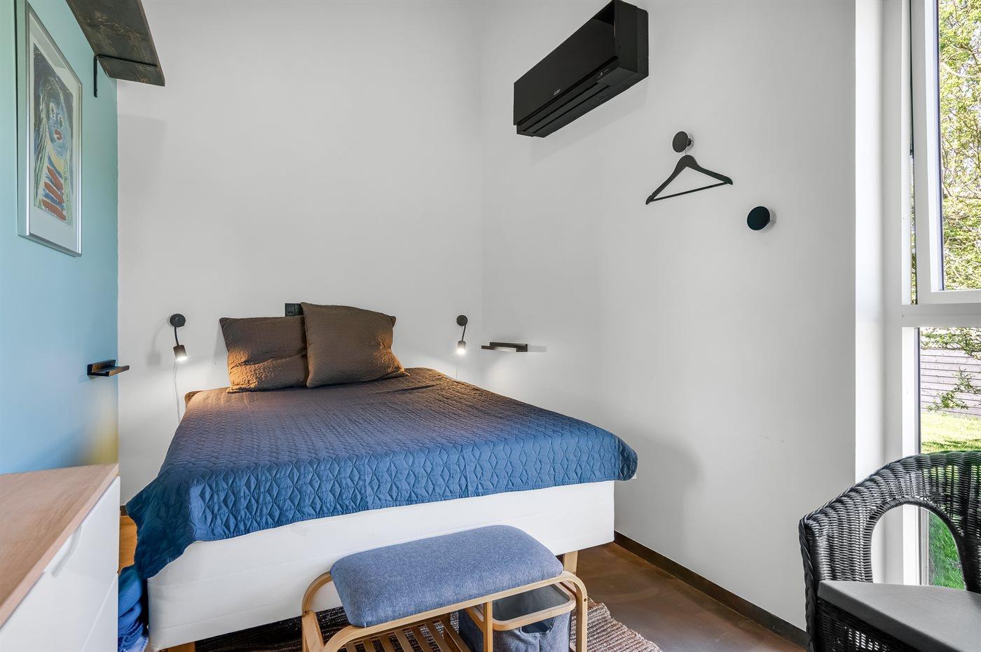 Der er i alt 3 soveværelser. Sovepladserne fordeler sig på: 6 sovepladser i dobbeltsenge. 1 soveplads i sovesofa (enkelt). Derudover er der 1 stk. barneseng.