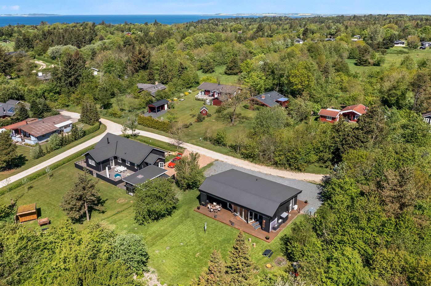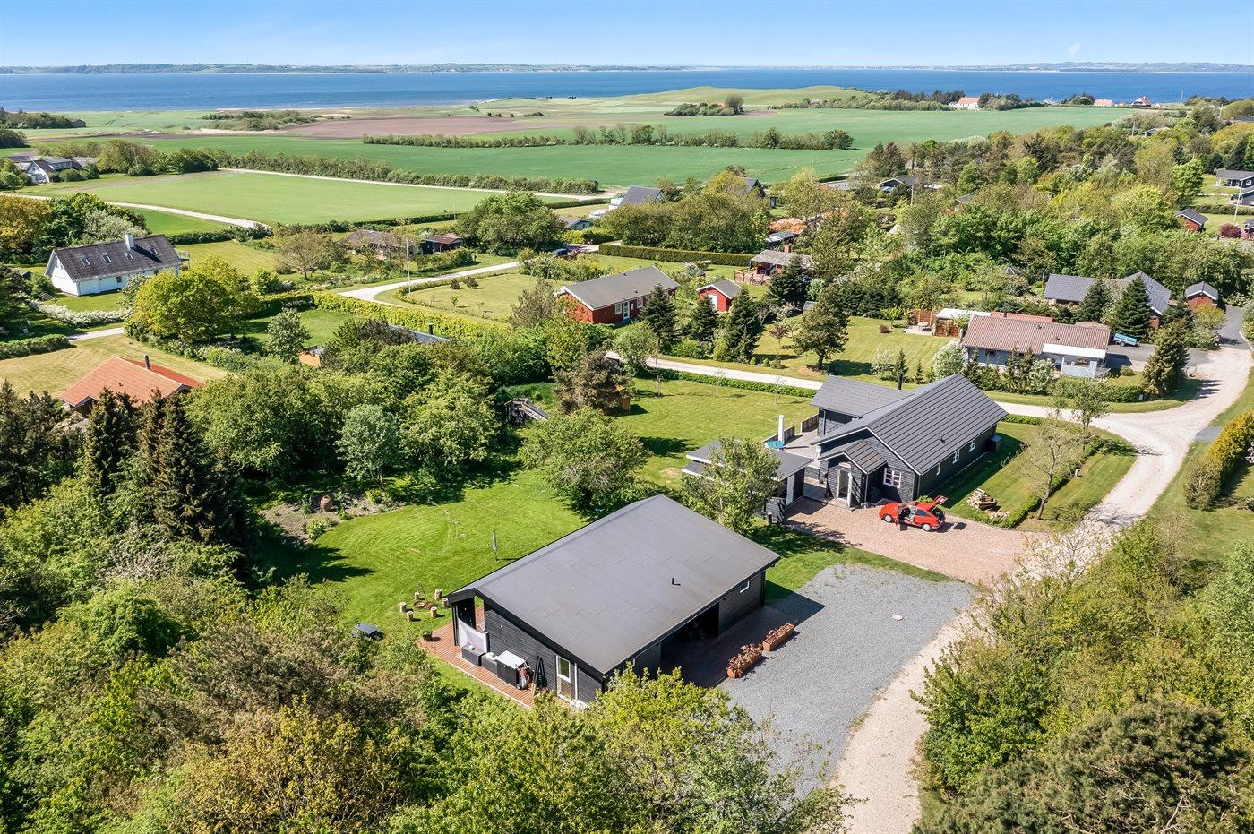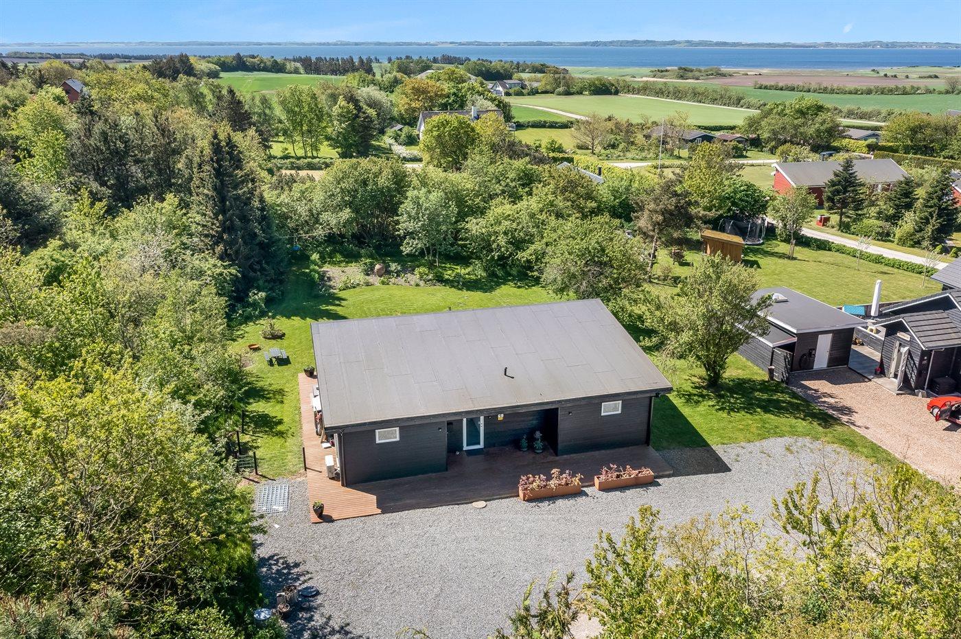 Luksuriøst sommerhus i Ertebølle nær børnevenlig strand og fjord med stor terrasse og naturgrund.