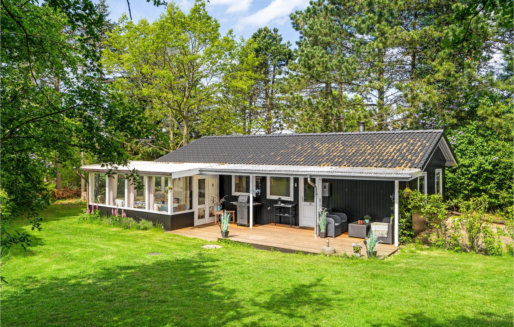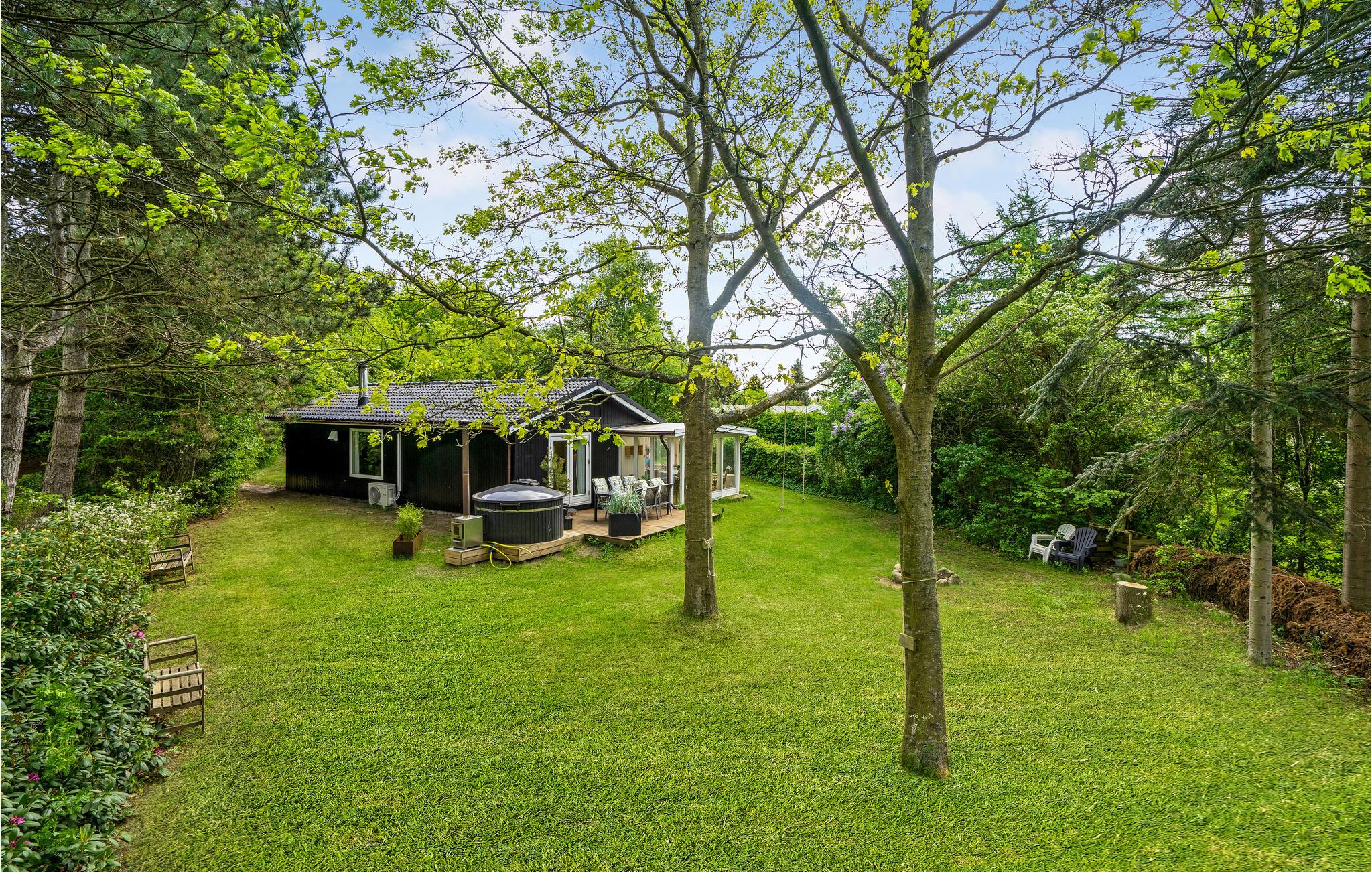 Hyggeligt sommerhus i Ertebølle med skovudsigt, udestue og vildmarksbad til en afslappende ferie.