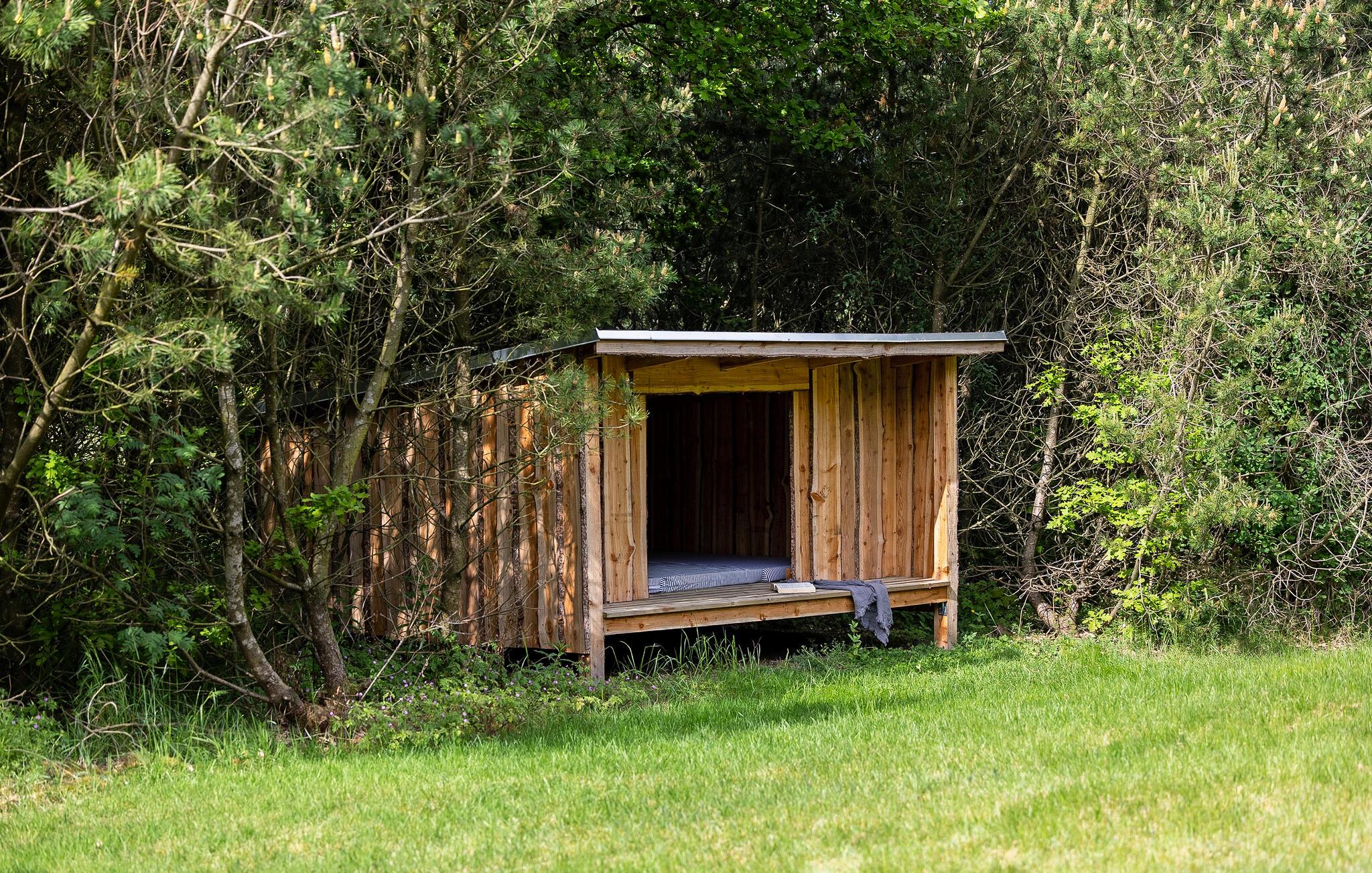 Hyggeligt feriehus på naturgrund nær Limfjorden med brændeovn og overdækket terrasse.