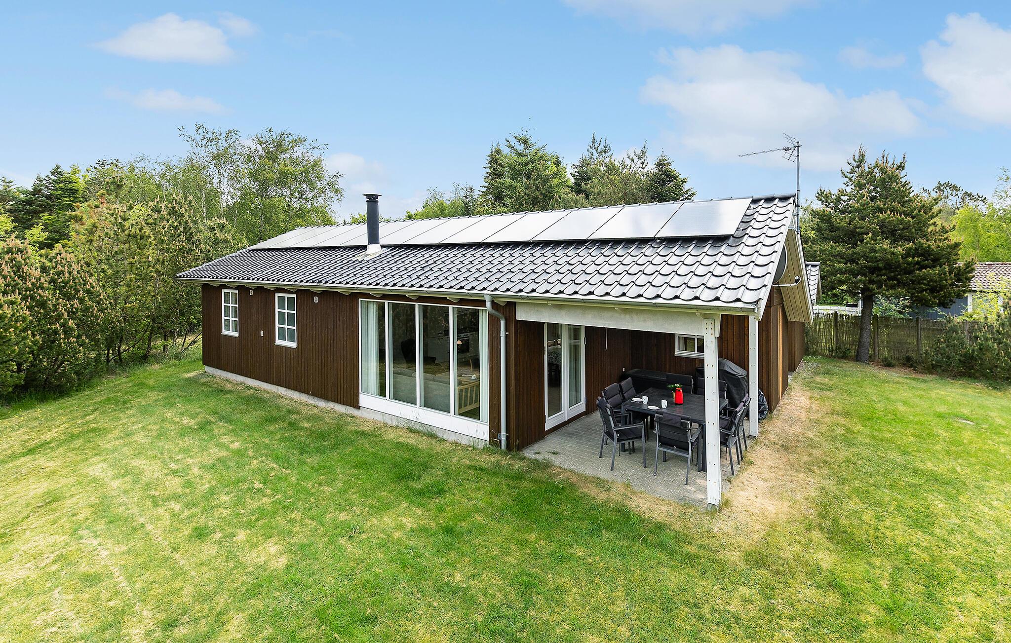 Et lyst og rigtig hyggeligt indrettet feriehus beliggende på en stor, ugenert naturgrund. Brændeovnen luner godt i køkken/alrummet og skaber en dejlig stemning på kølige aftener. Her findes tre soveværelser og et pænt badeværelse med gulvvarme. Dejlig terrasse og have, hvor I kan hygge jer uden nysgerrige blikke.