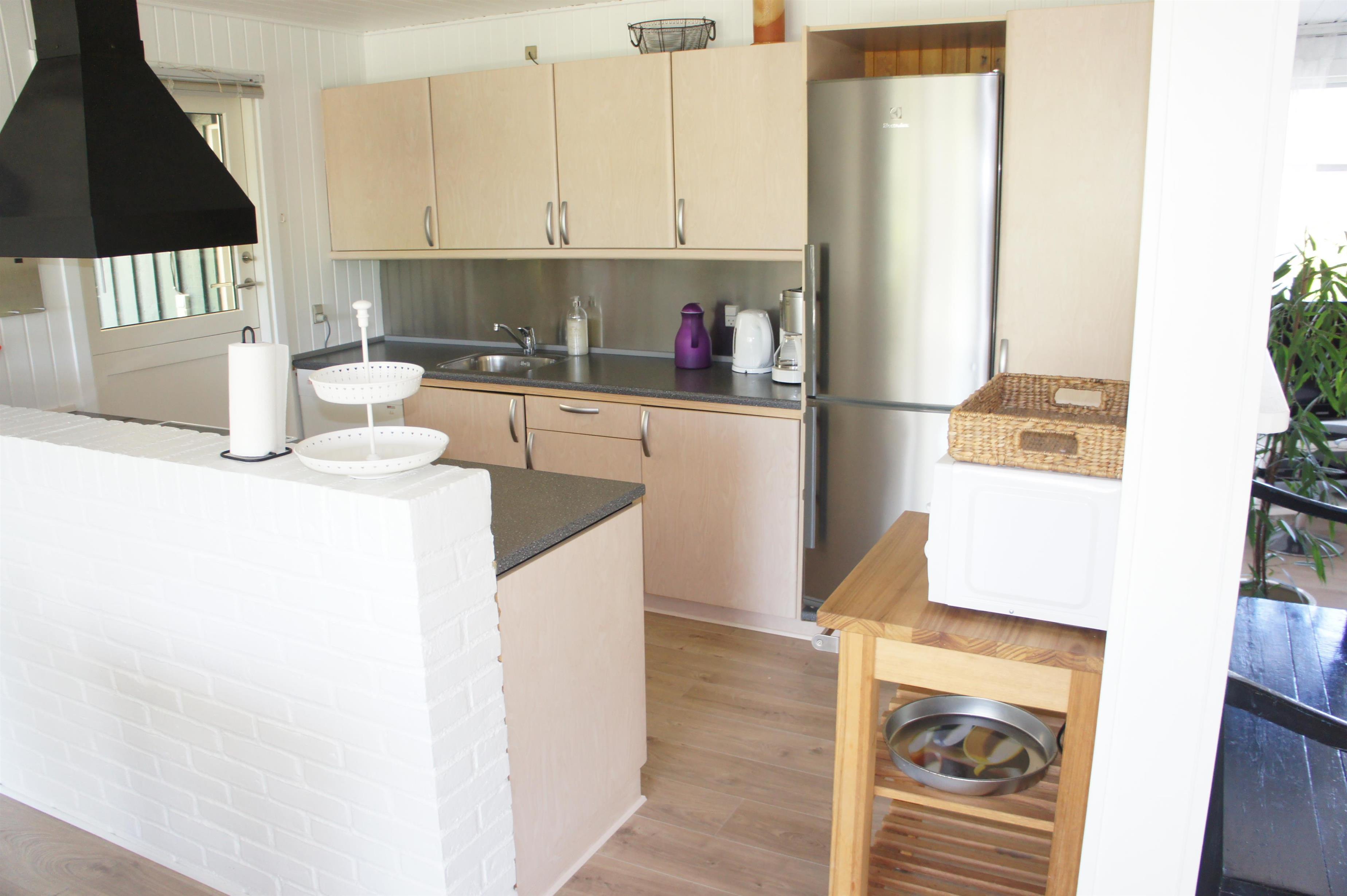 Pænt og meget velholdt feriehus, beliggende kun 5 km fra Esbjerg bymidte. Ca. 40 m2 stor vinkelstue med tv, DVD , video, c/d anlæg,trådløs internet, brændeovn, lædersofa og spiseplads i åben forbindelse til køkkenet, som er meget veludstyrret med bl.a. opvaskemaskine, køle-fryse/skab, kaffemaskine m.m. Flisebeklædt badeværelse med gulvvarme, bruseniche og skabsplads. Udehus med vaskemaskine, tørretumbler og 200 liters vandbeholder. Udendørs er der 1 overdækket terrasse ligesom der er anlagt et flot flisearrangement i haven med havemøbler og liggestole. Huset er beliggende i et roligt område med en helt afskærmet have, tæt på by og strand. 1 soverum med dobbeltseng + skabsplads. 2 soverum med enkeltsenge + skabsplads. Obligatorisk slutrengøring.