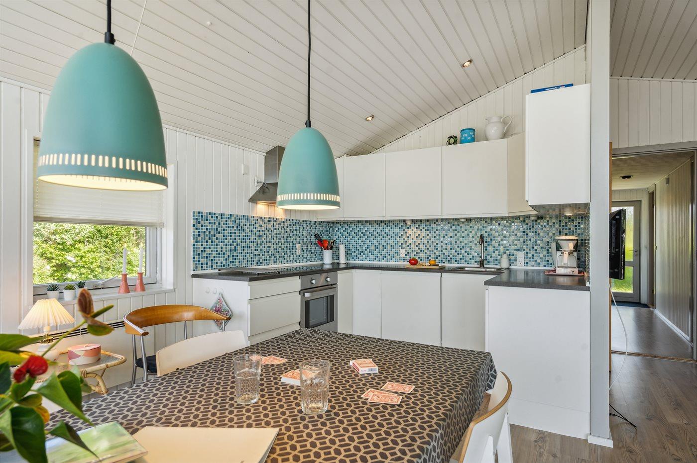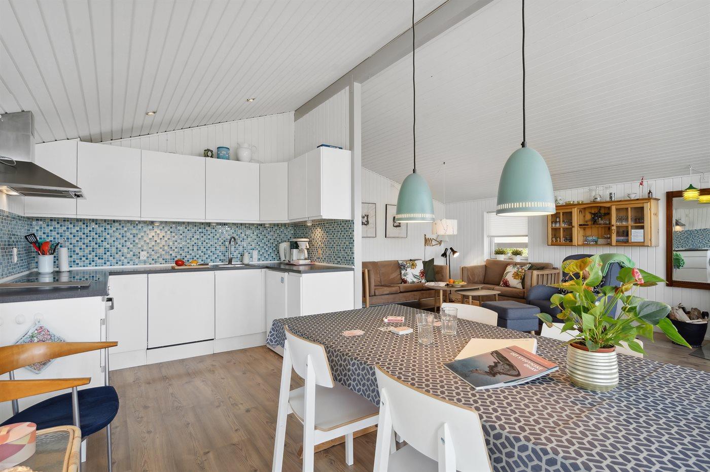 Køkkenet er udstyret med 1 køleskab. Der er 4 keramiske kogeplader, varmluftovn samt opvaskemaskine.