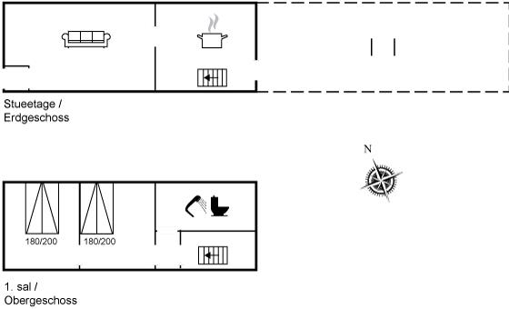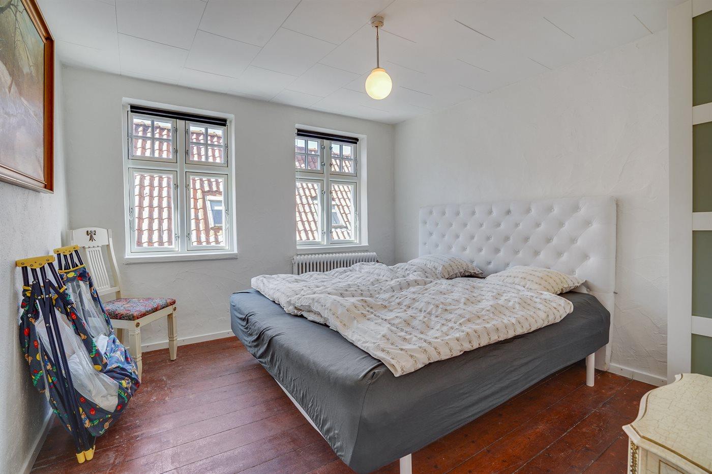Der er i alt 2 soveværelser. Sovepladserne fordeler sig på: 4 sovepladser i dobbeltsenge. Bemærk, at værelset med de 2 enkeltsenge er et gennemgangsværelse. Derudover er der 1 stk. barneseng.