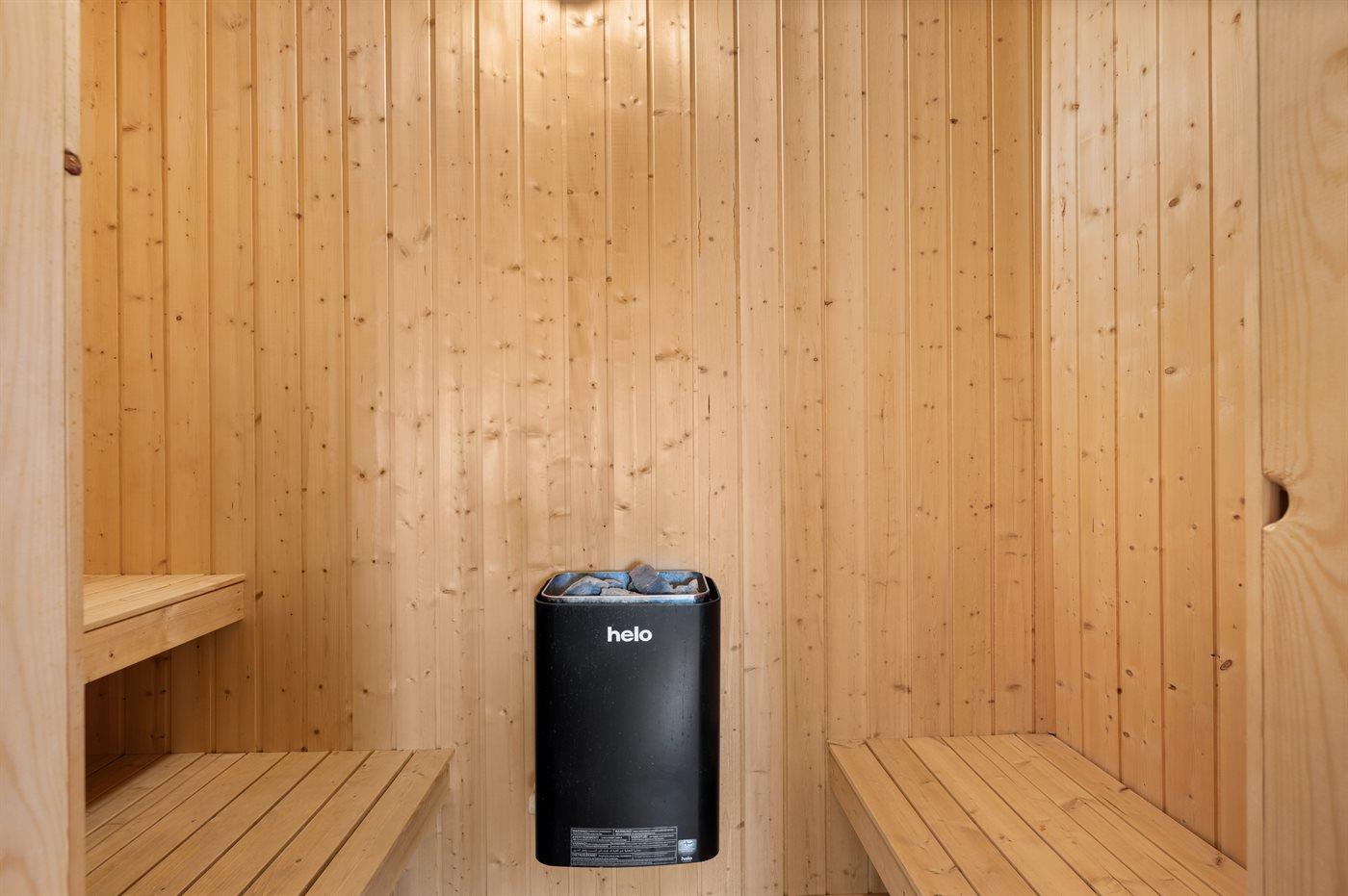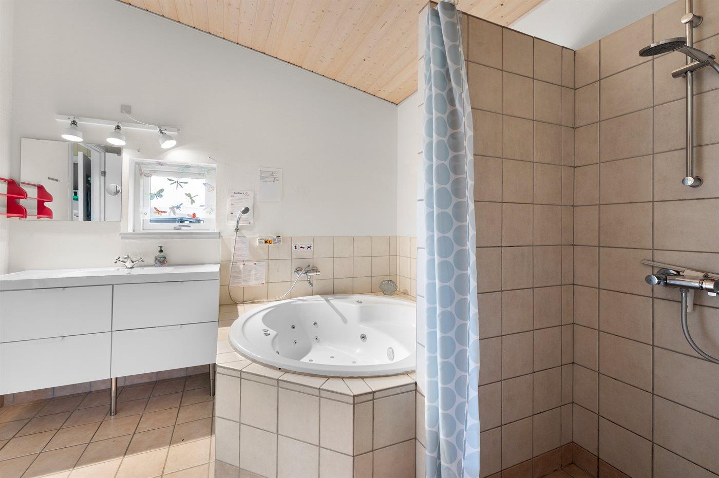Der er 2 badeværelser med bruseniche og 2 toiletter. Der er gulvvarme på 2 badeværelser. I saunaen er der mulighed for afslapning.