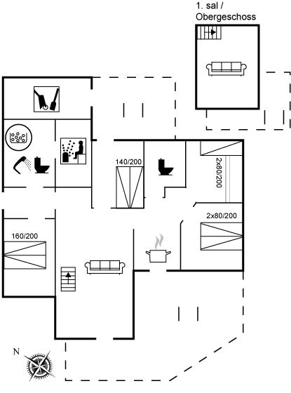Sommerhuset egner sig til 6 personer samt 1 barn op til 3 år. Ferieboligen er på 102 m², er i 2 plan, og er bygget i 2003. Det er tilladt at medbringe 2 husdyr. Der er gulvvarme i alle klinkegulve. Der er gulvvarme i entréen. Ferieboligen har vaskemaskine. Tørretumbler. Frysekapacitet på 20 liter. Der er desuden brændeovn. Til de små er der 1 stk. barnestol.