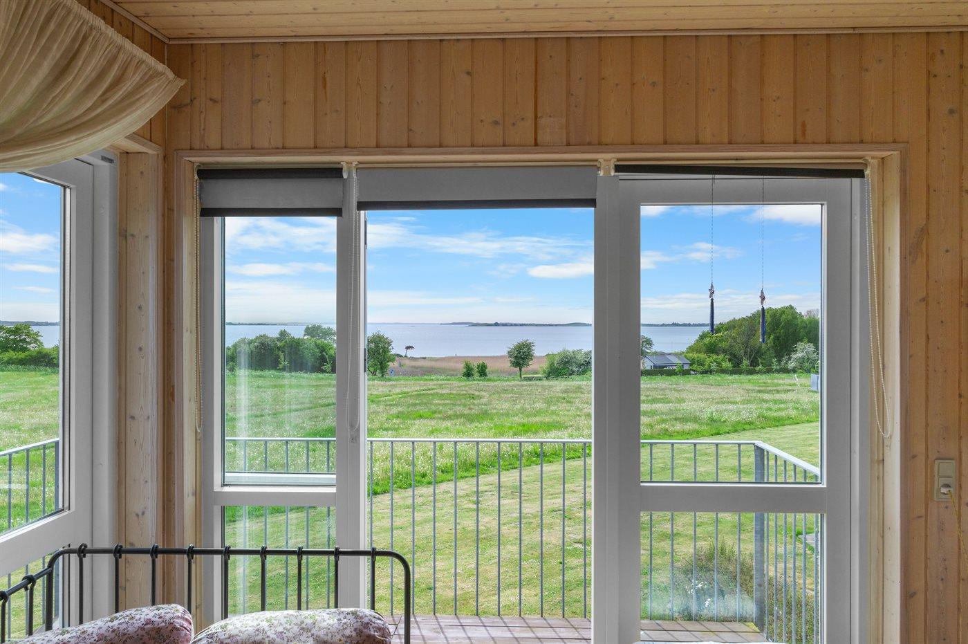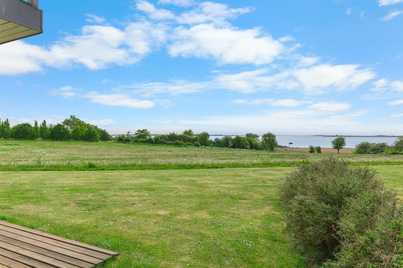 Fra huset og den sydvestvendte terrasse foran, er der flot udsigt ud over vandet og solnedgangen.