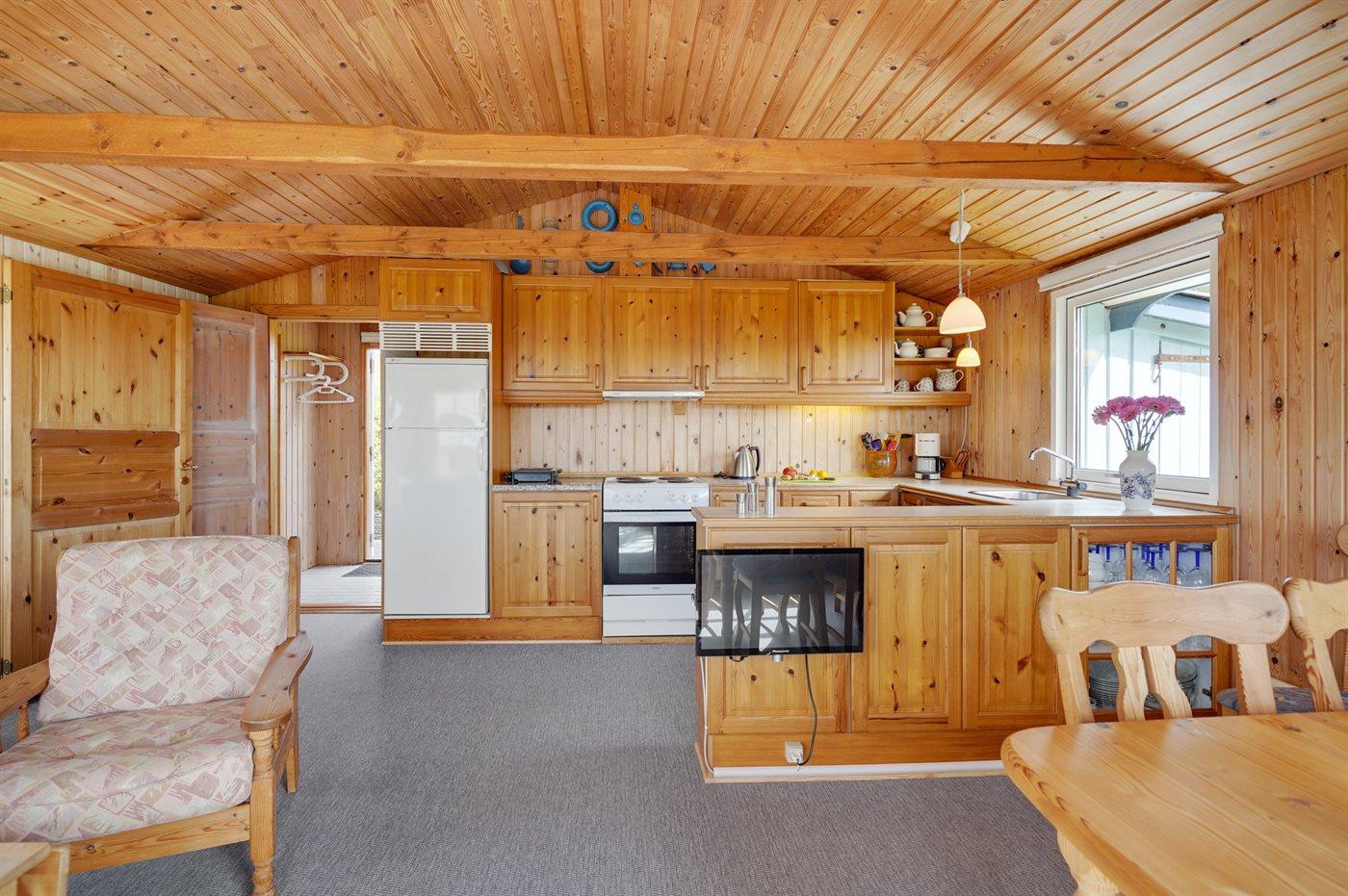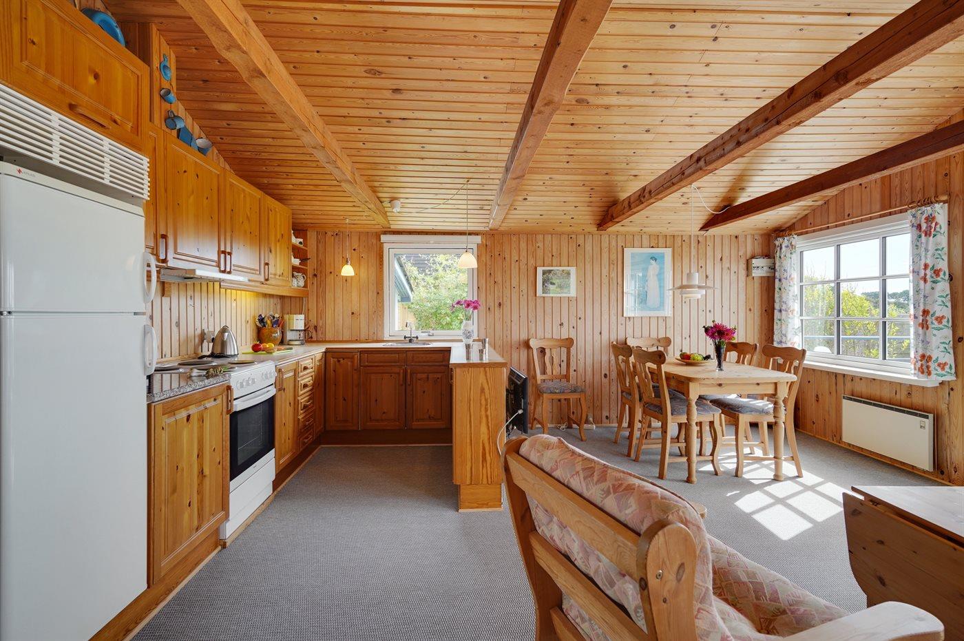 Køkkenet er udstyret med 1 køleskab. Der er 4 elkogeplader, bageovn.