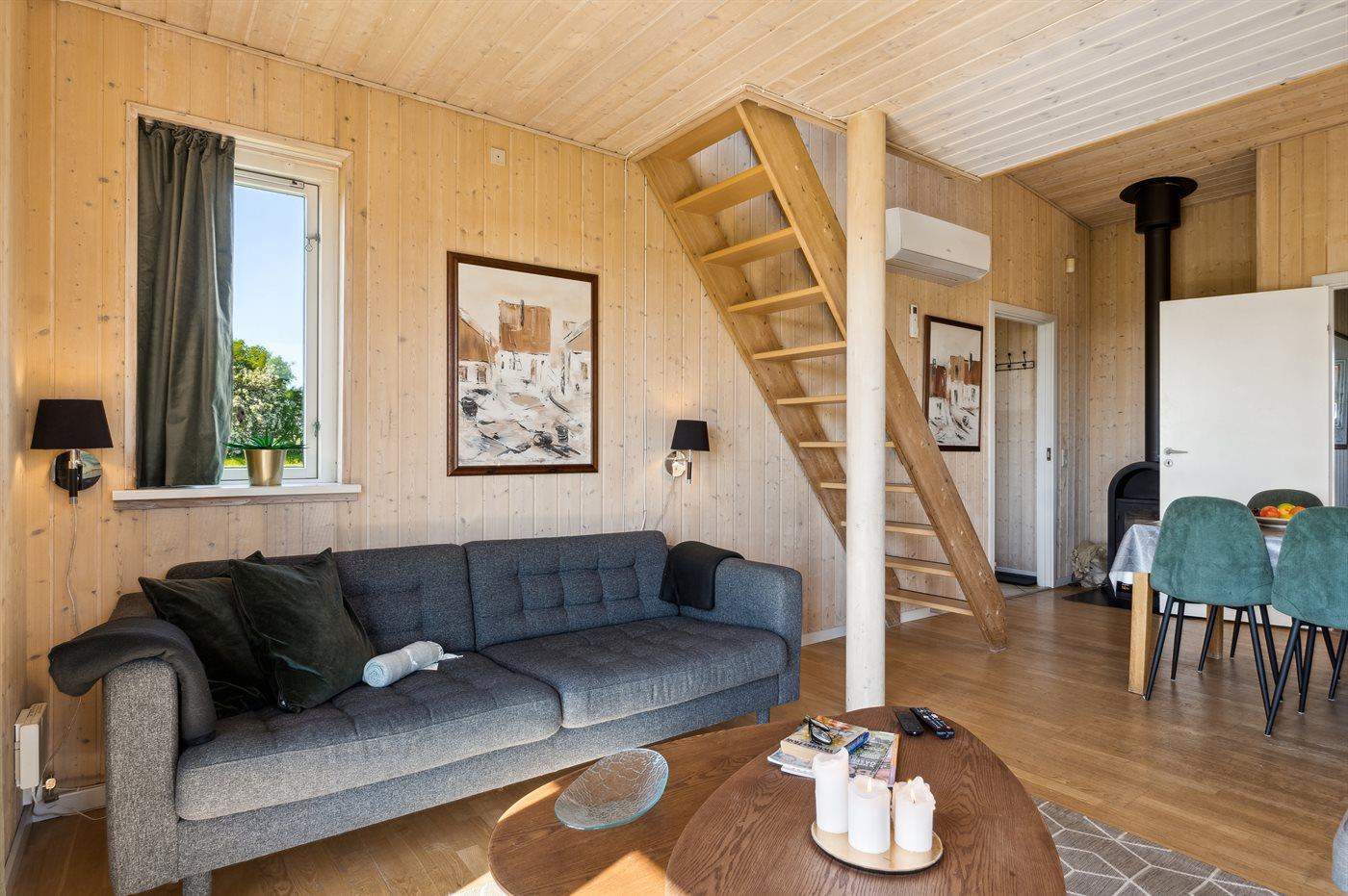 Dette hus adskiller sig fra de fleste andre huse i området ved, at 1.salen er udbygget, så stuen deroppe er dobbelt så stor som oprindeligt. Dette betyder, at man helt naturligt vil tilbringe en stor del af tiden i lige netop denne stue, hvorfra der er den skønneste udsigt.