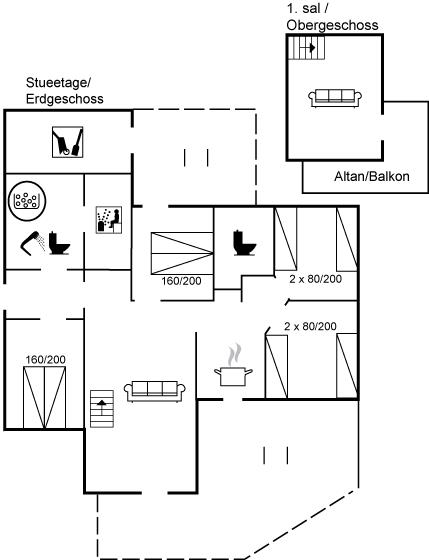 Der er i alt 4 soveværelser. Sovepladserne fordeler sig på: 4 sovepladser i dobbeltsenge. 4 sovepladser i enkeltsenge.