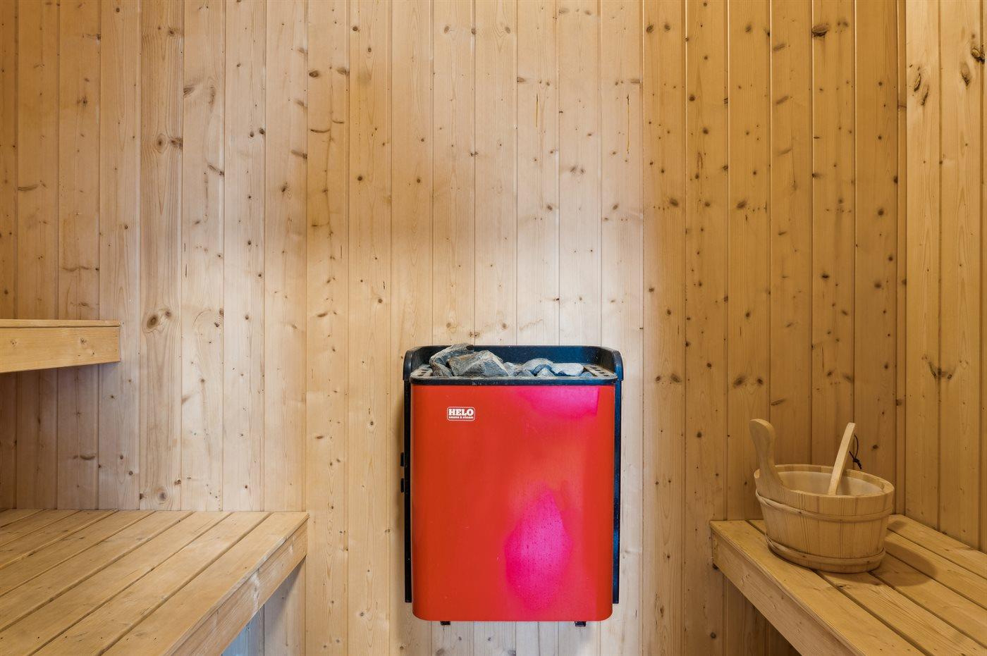 Der er 2 badeværelser med bruseniche og 2 toiletter. Der er gulvvarme på 2 badeværelser. I saunaen er der mulighed for afslapning.