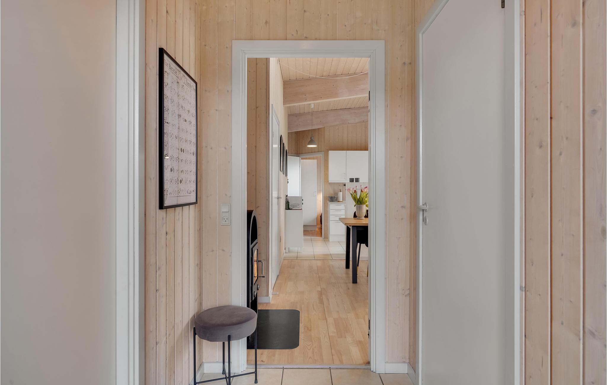 Dette attraktive hus har en fantastisk beliggenhed nær havet, som I kan se ned til gennem husets vinduer. I kan se frem til en hyggelig bolig med lyse trævægge, som er lækkert indrettet med moderne og stilrene løsninger, så her får I en behagelig ramme om samværet efter en lang dag på farten. Nyd dagens måltider med en vidunderlig udsigt til de grønne omgivelser og læn jer tilbage i sofaen med en god bog, når I trænger til at slappe af. I saunaen får I varmen efter en rask gåtur, og der er flere hyggekroge, hvor I kan nyde udsigten. Fyld aftenerne med tv-serier og brætspil
