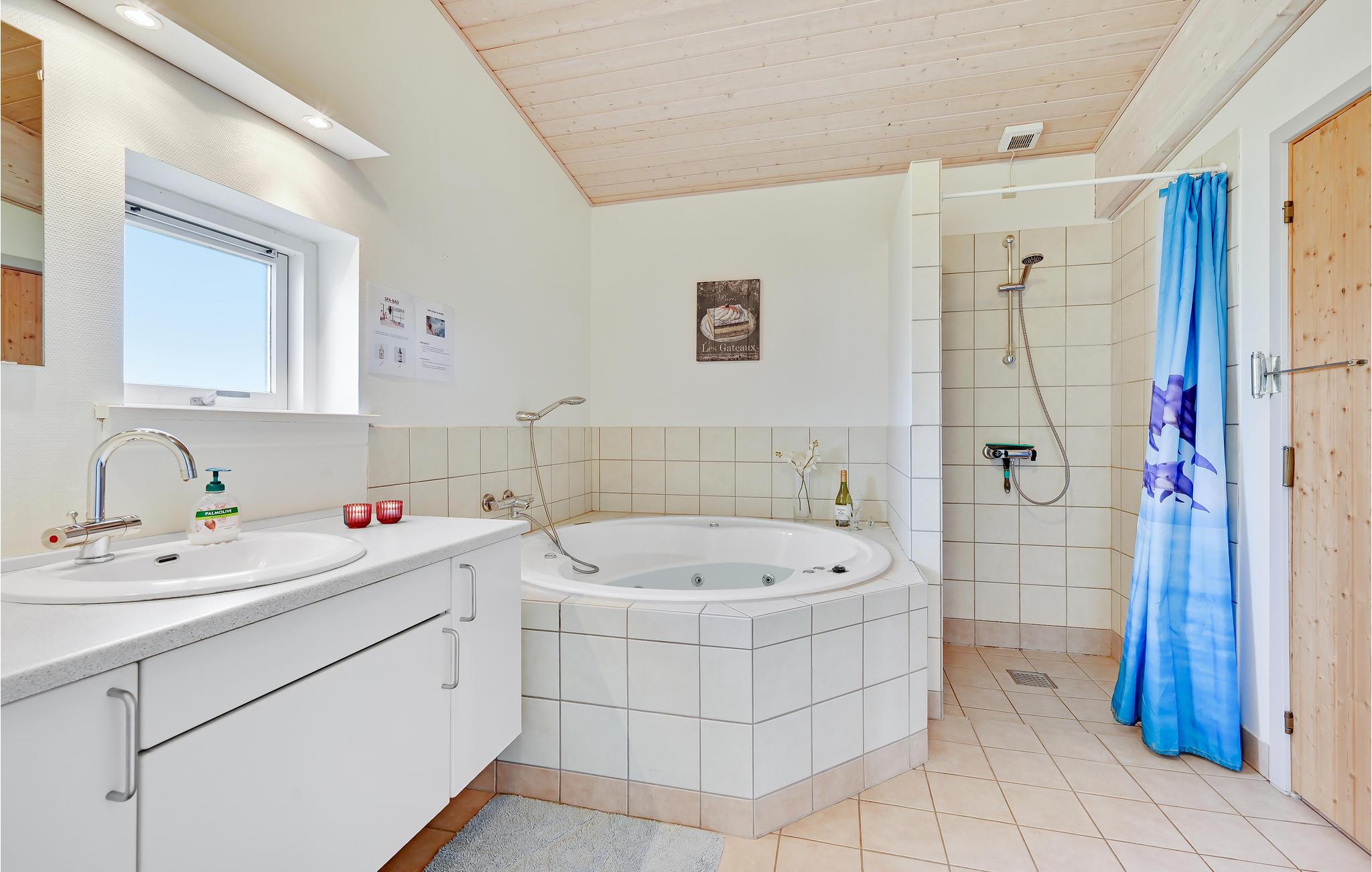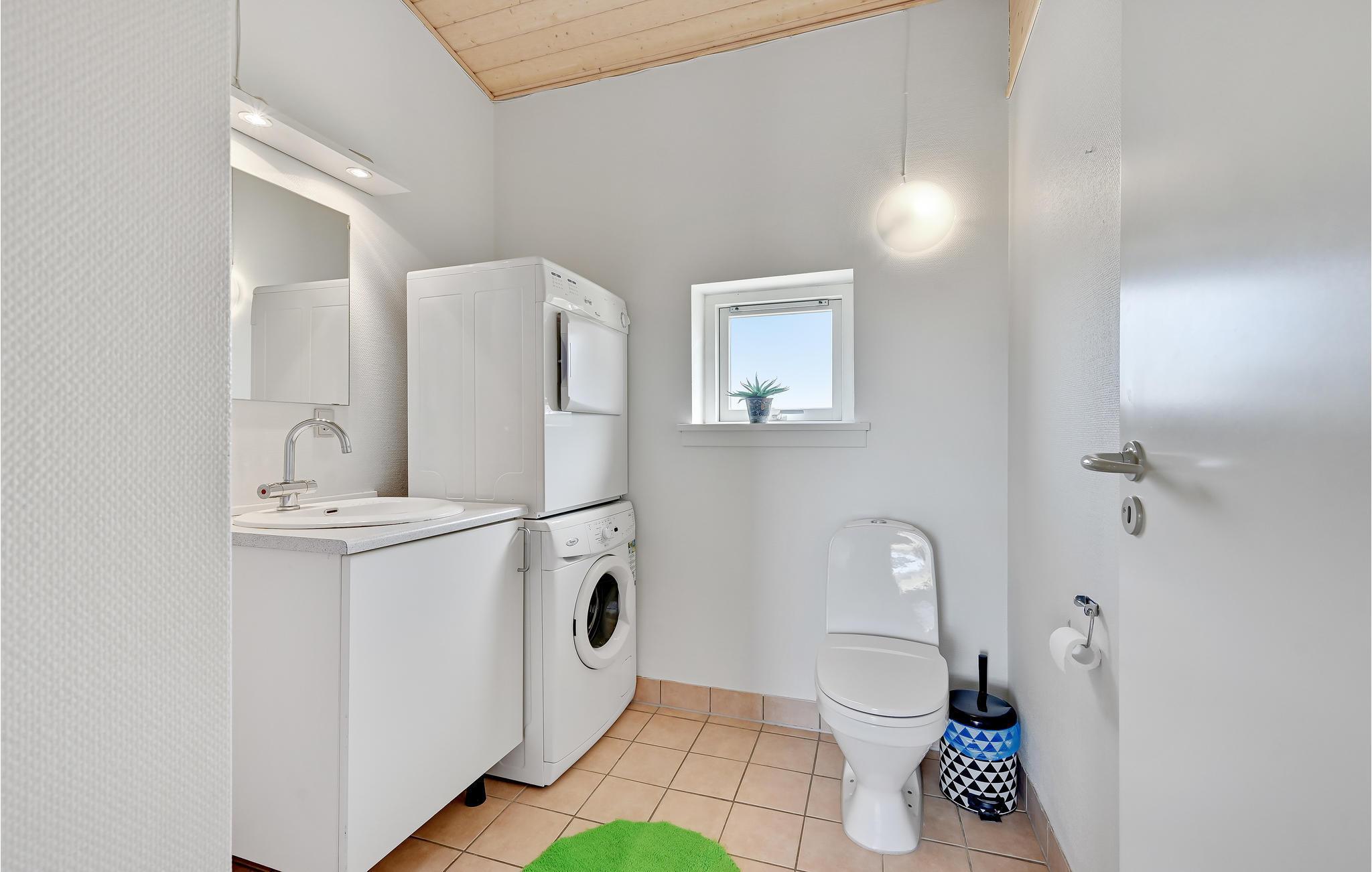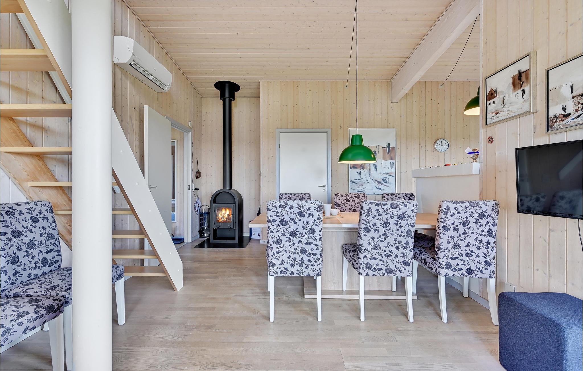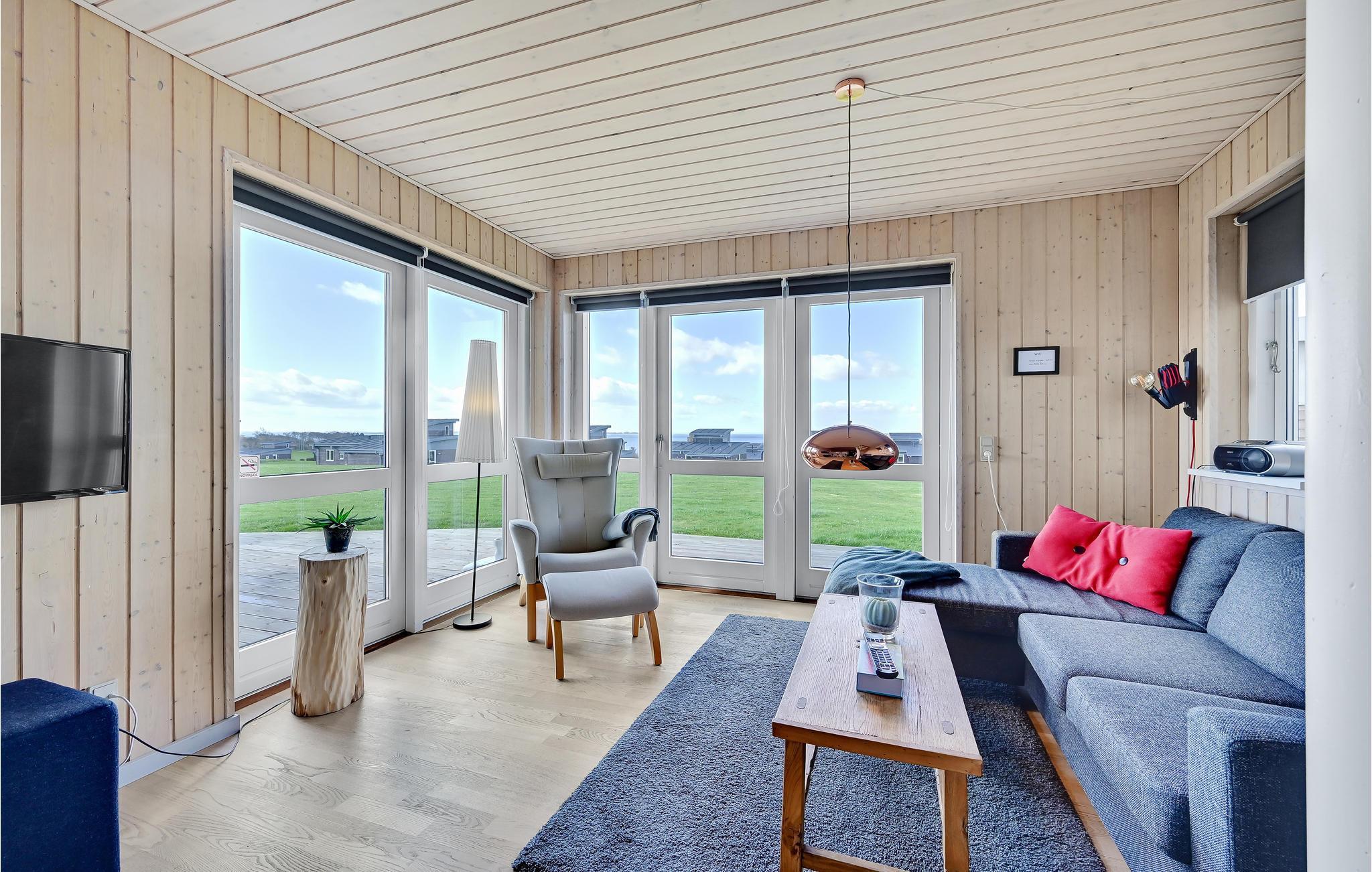 Feriehuset byder på en 50 m² åben terrasse med grill til rådighed. Huset er beliggende på en dejlig, ugeneret grund for enden af en lukket vej med udsigt til både hav og mark. Der er mulighed for parkering ved huset, og I har kun 300 m til stranden.