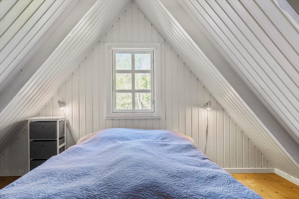 Det er rart at have altan på førstesalen, men mon ikke I i endnu højere grad kommer til at slappe af på det store terrassemiljø, der breder sig rundt om huset. En del af terrassen er overdækket, og her står der blandt andet et fiskerensebord, hvis I har haft held på fisketuren. Om aftenen kan I grille jeres egen fangst – eller alternativt det, I har skaffet i supermarkedet – mens I nyder de fredfyldte og naturskønne omgivelser. Naturgrundens græsplæne er dejligt stor, og i forbindelse med terrassen er der en indhegnet løbegård til hund på ca. 200 m2.